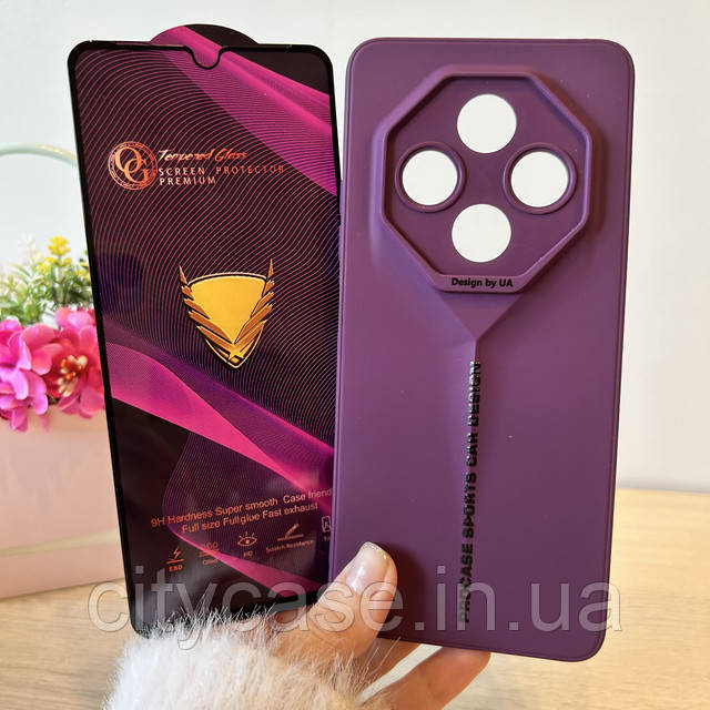 Набор стекло + чехол для xiaomi redmi 14c силіконовий однотонний бампер Sports Car Design (фиолетовый)