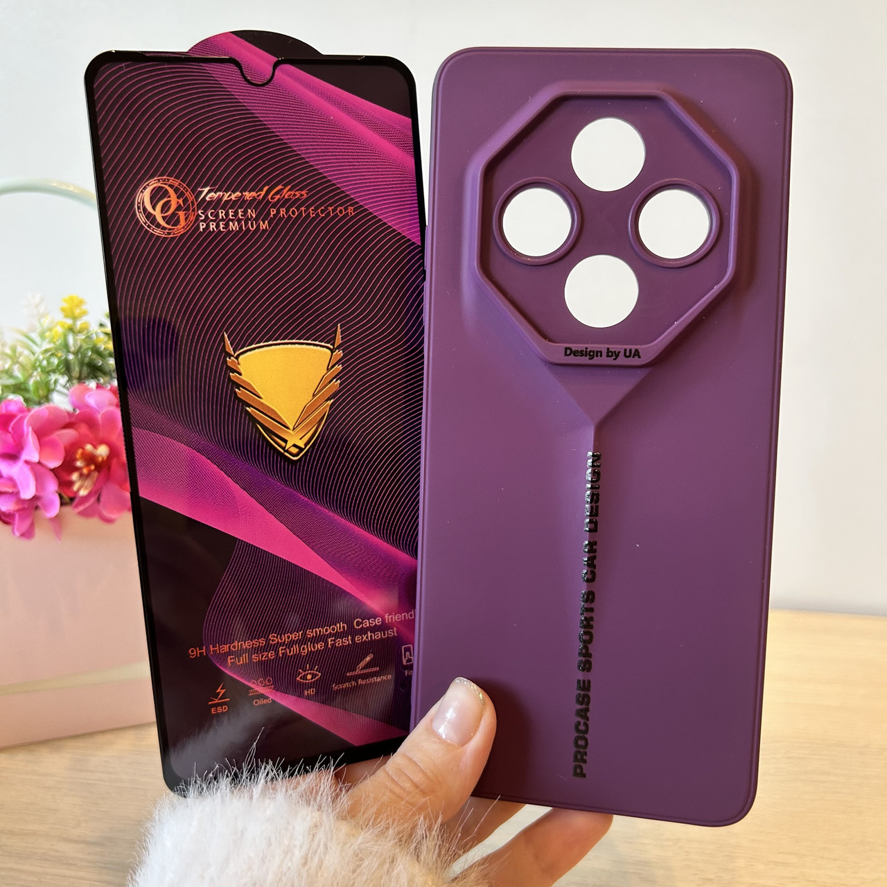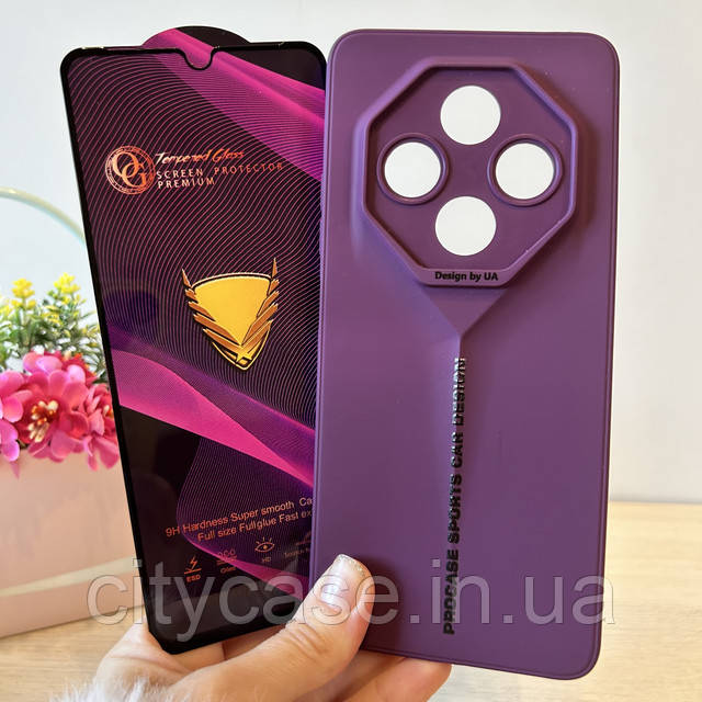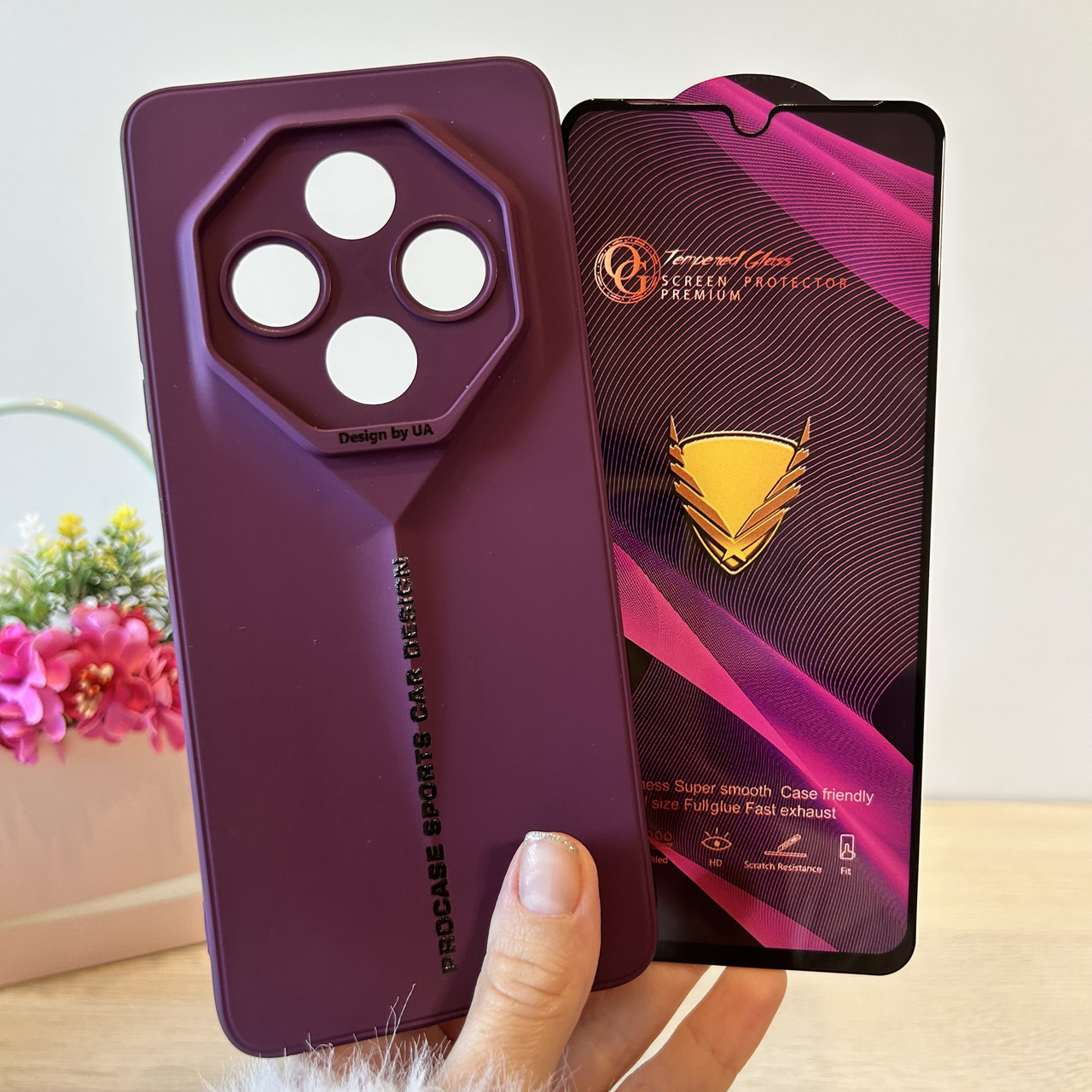 Набор чехол + стекло для Poco c75 силіконовий однотонний бампер Sports Car Design (фиолетовый)