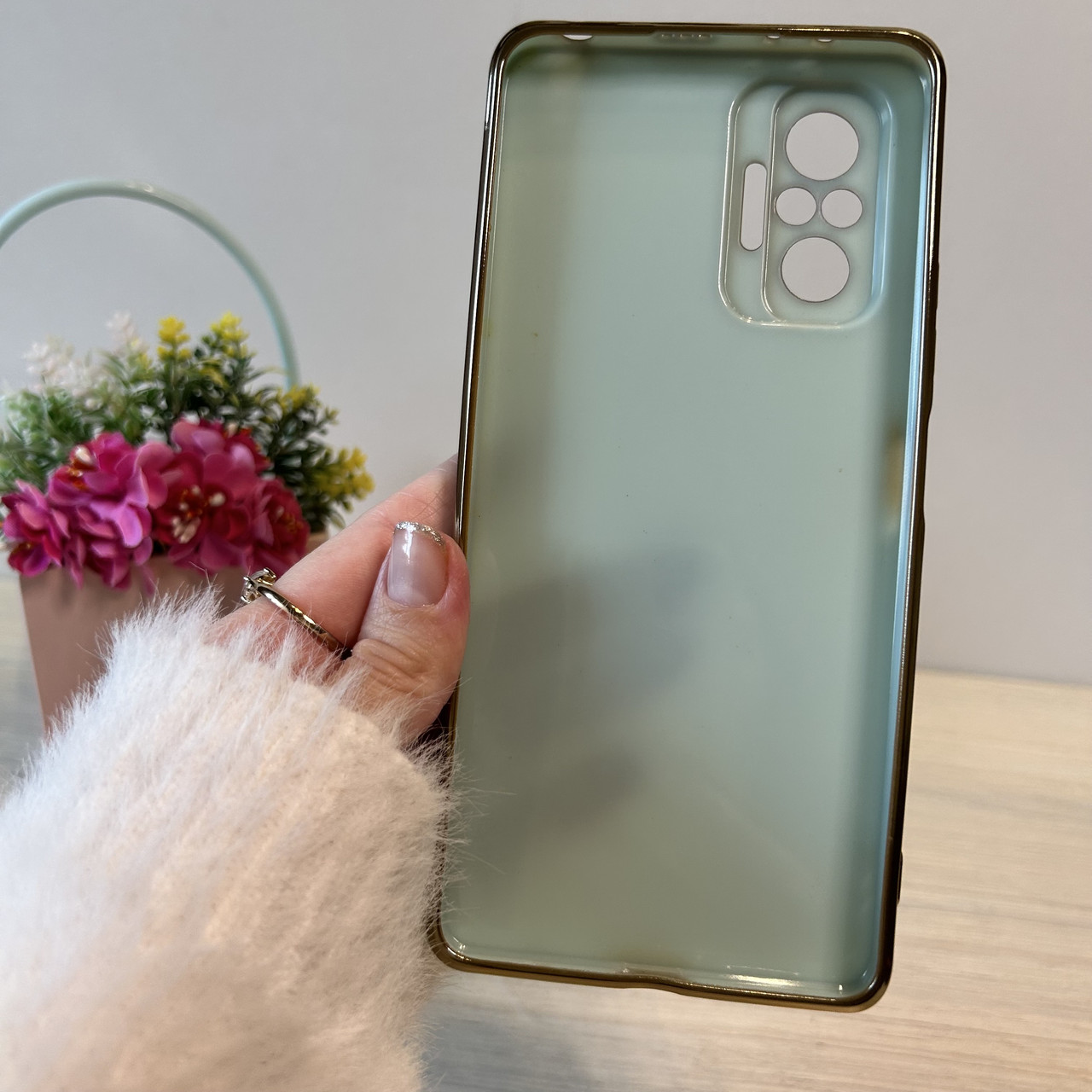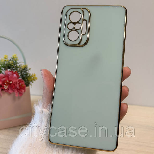 Набор чехол + стекло для xiaomi redmi Note 10 pro женский силиконовый с золотистой рамкой Luxury (мятный)