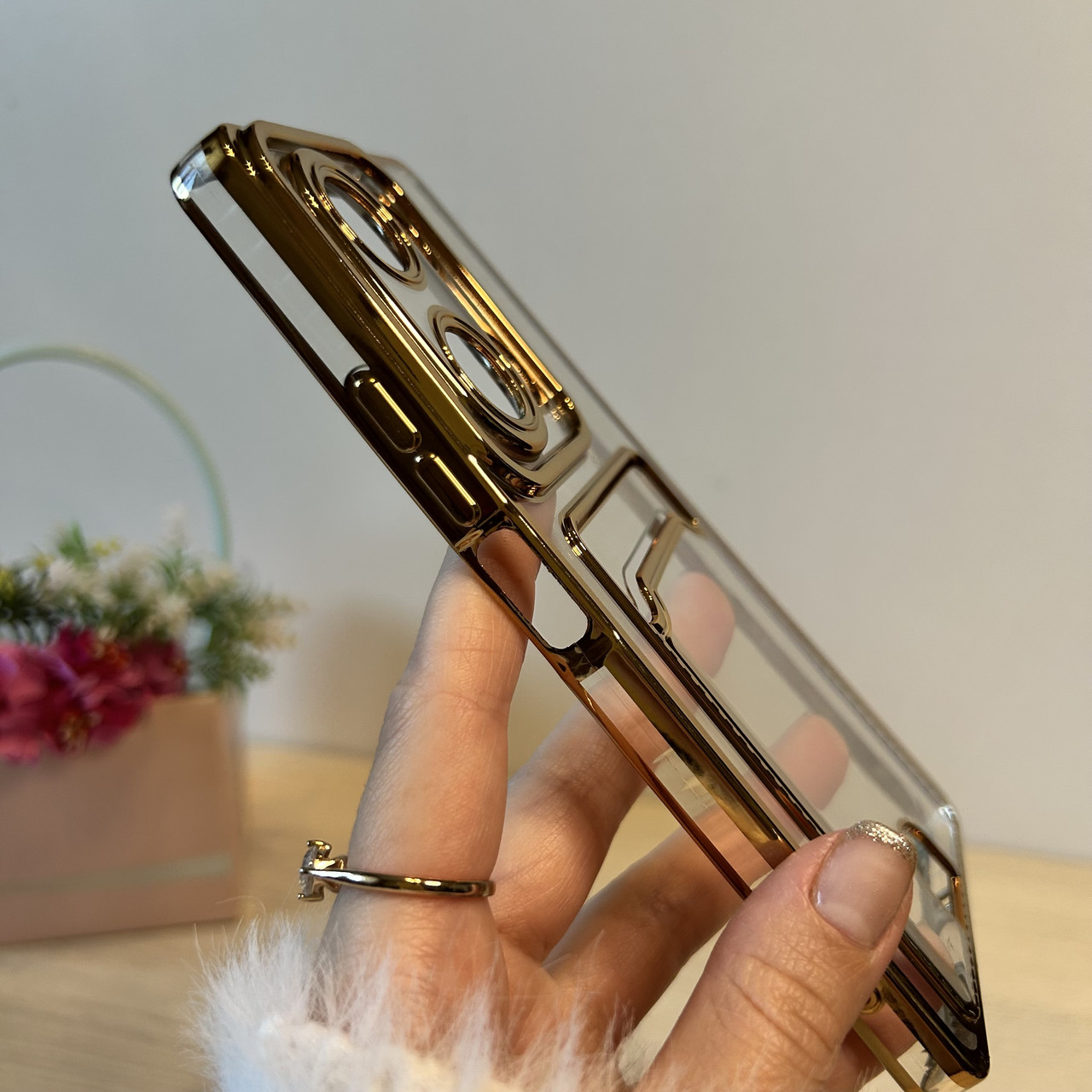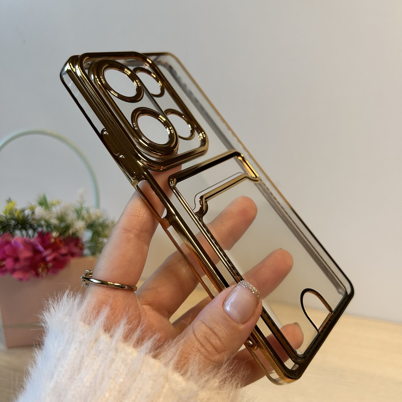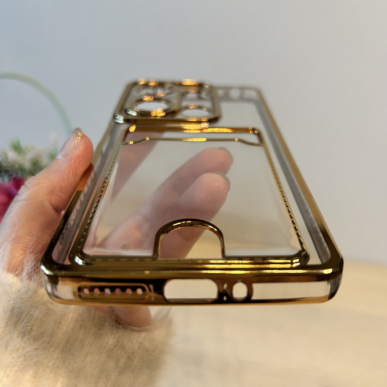 Набір скло + чохол для xiaomi redmi Note 13 pro 4g силіконовий із золотистою рамкою та кишенею під картки