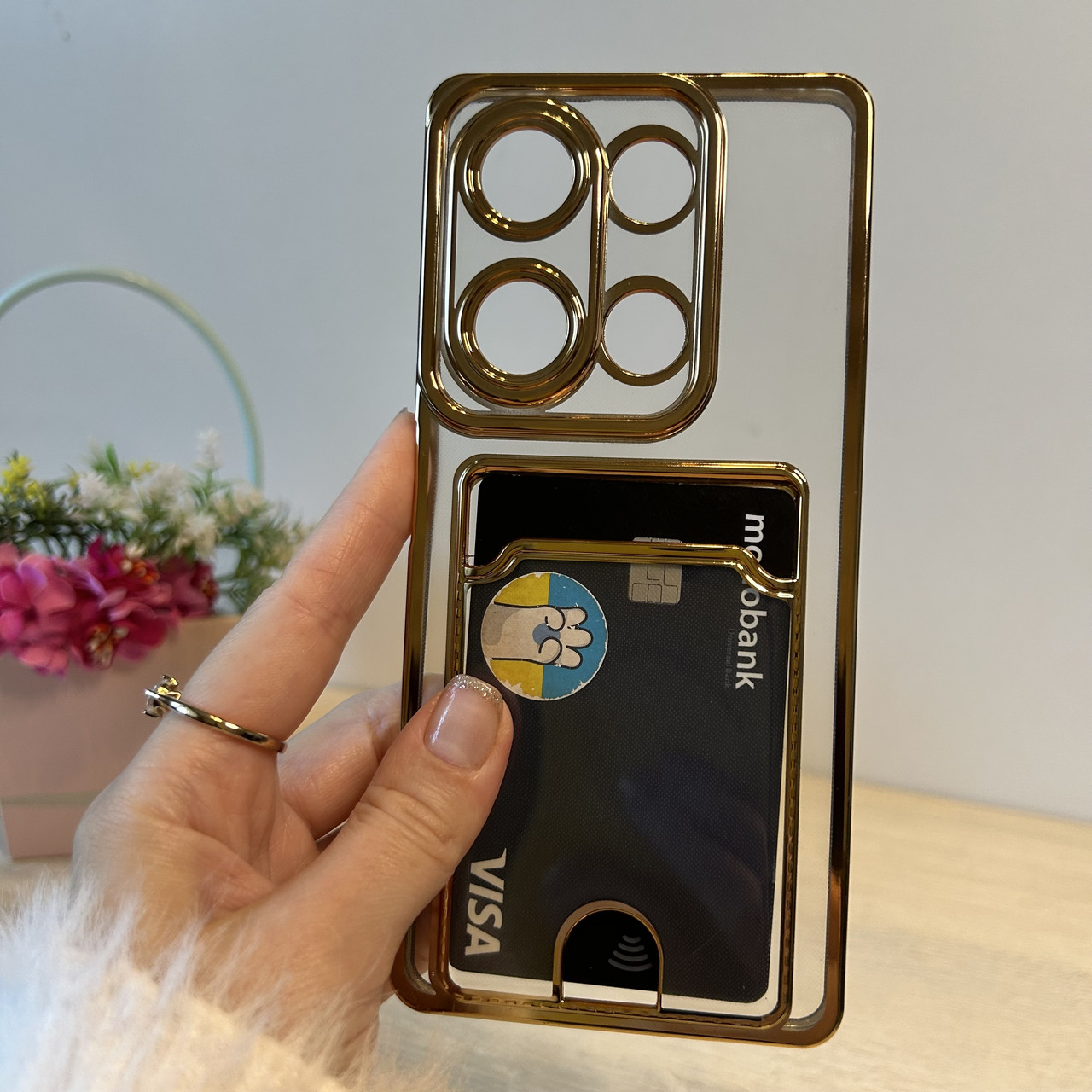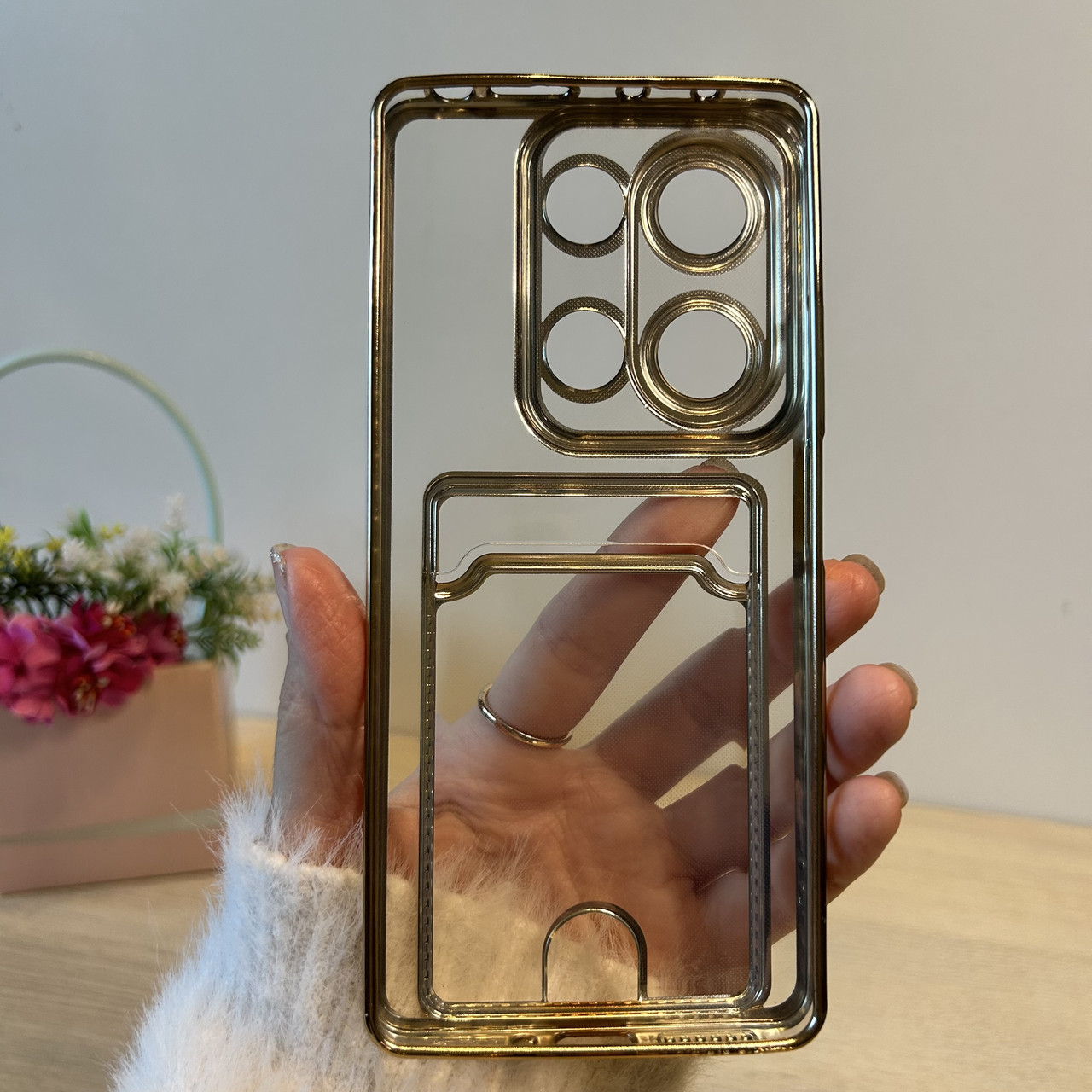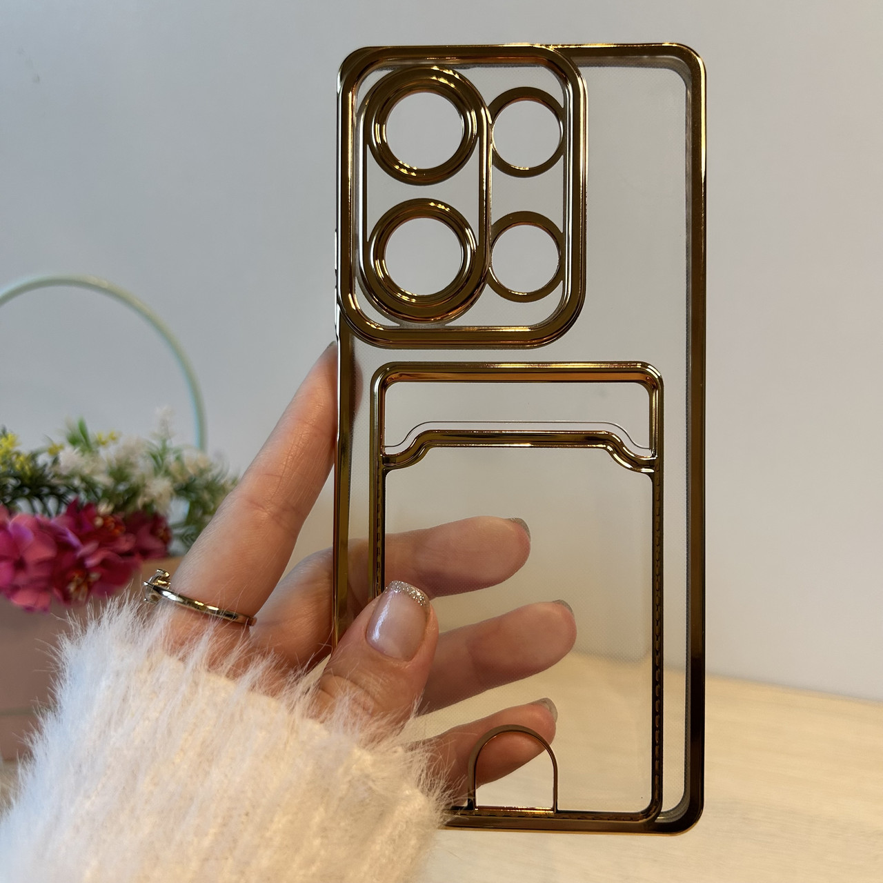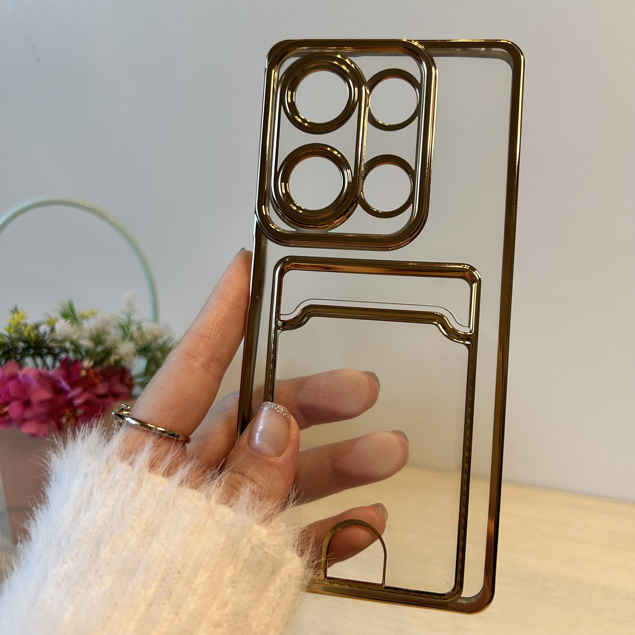 Чохол для xiaomi redmi Note 13 pro 4g жіночий силіконовий з рамкою та кишенею під картки Luxury Card