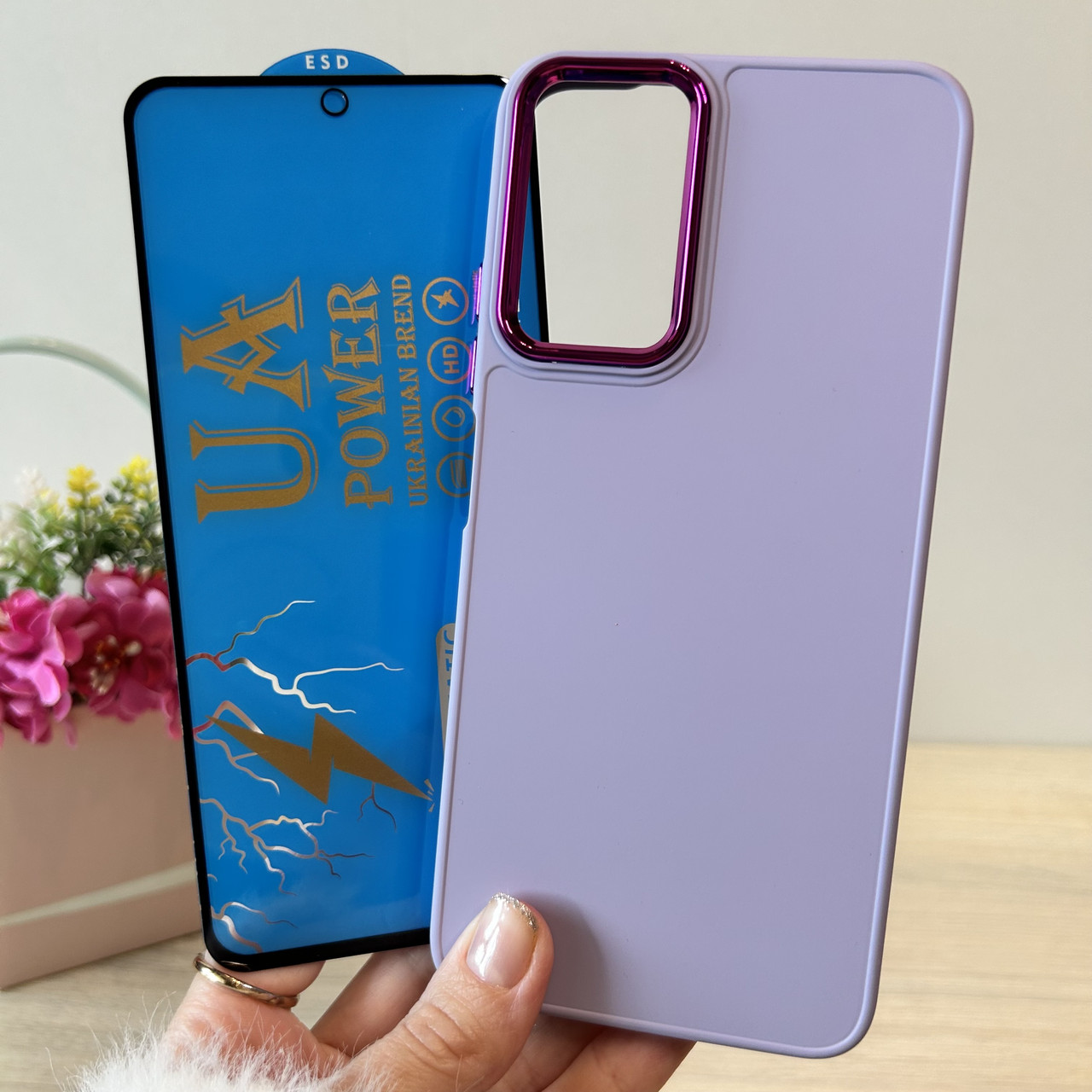 Набір чохол + скло для xiaomi redmi Note 11 / Note 11s силіконовий однотонний матовий Metal Frame (лиловый)