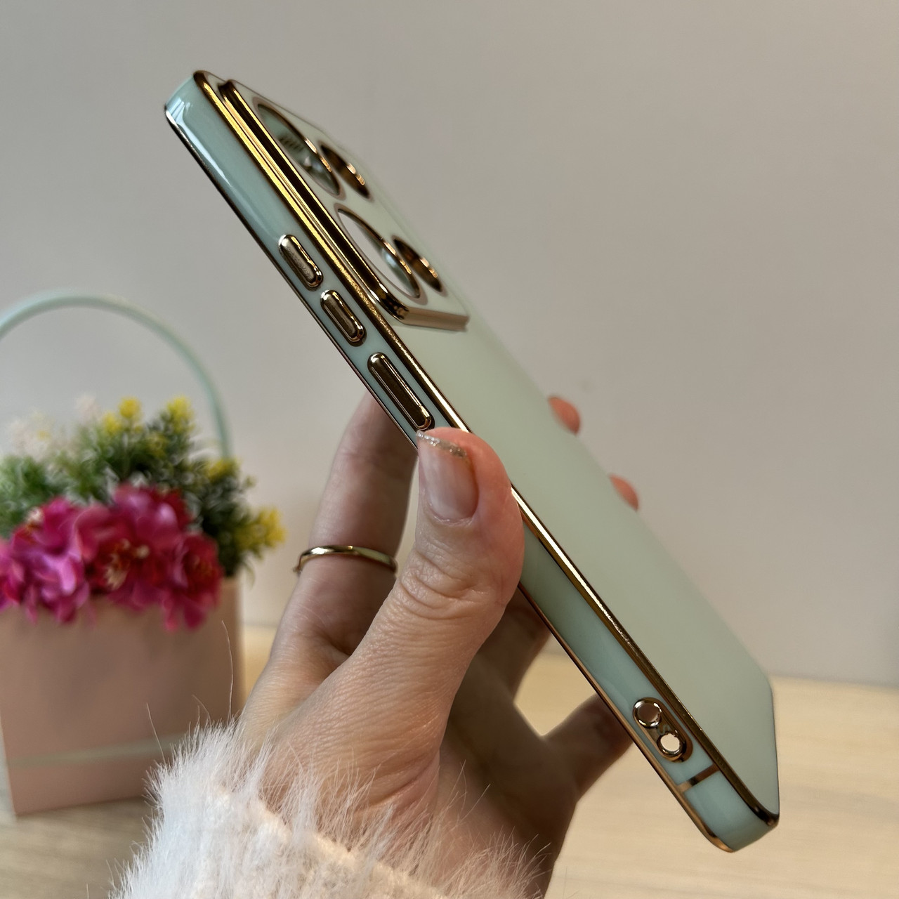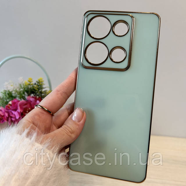 Набір Чохол + скло для xiaomi redmi Note 13 pro 4g жіночий силіконовий із золотистою рамкою (м’ятний)