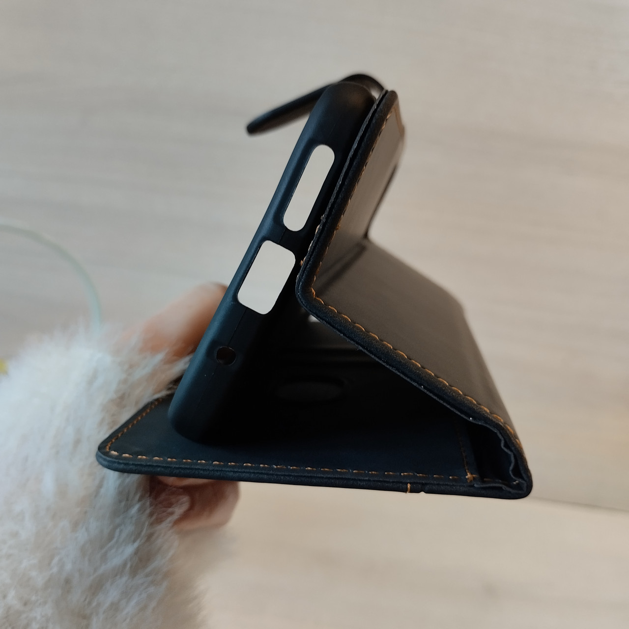 • Функция подставки: Удобно смотрите видео, читайте или общайтесь по видеосвязи благодаря встроенной функции подставки. Просто сложите крышку чехла – и ваш смартфон устойчиво зафиксирован в горизонтальном положении.