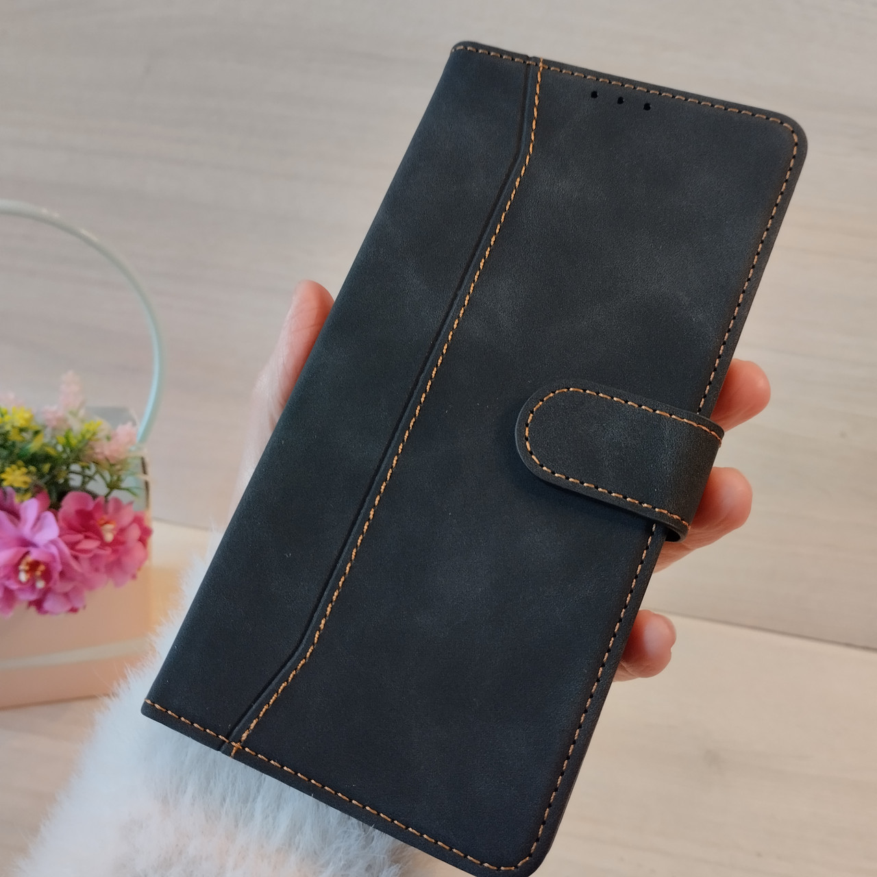 Этот чехол-книжка сочетает в себе практичность и изысканный дизайн. Изготовленный из высококачественной искусственной кожи с приятной текстурой, он не скользит в руке и дарит ощущение комфорта.