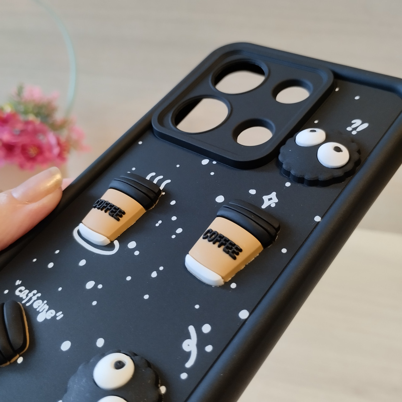 Чехол для xiaomi redmi Note 13 4g силиконовый с 3-D наклейками TPU Toys Case (черный кофе)