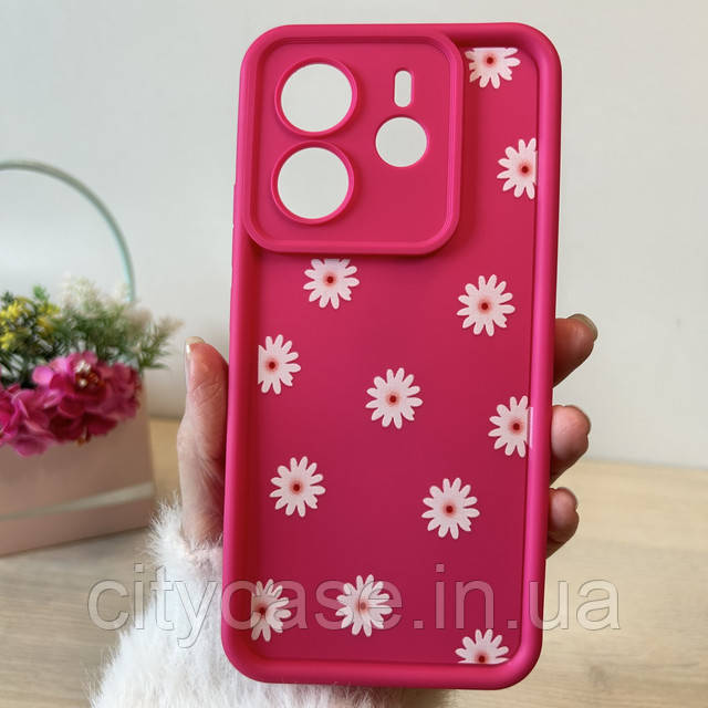 Чехол для Xiaomi redmi Note 14 4g силиконовый с рисунком TPU Pictures Case розовый с ромашками