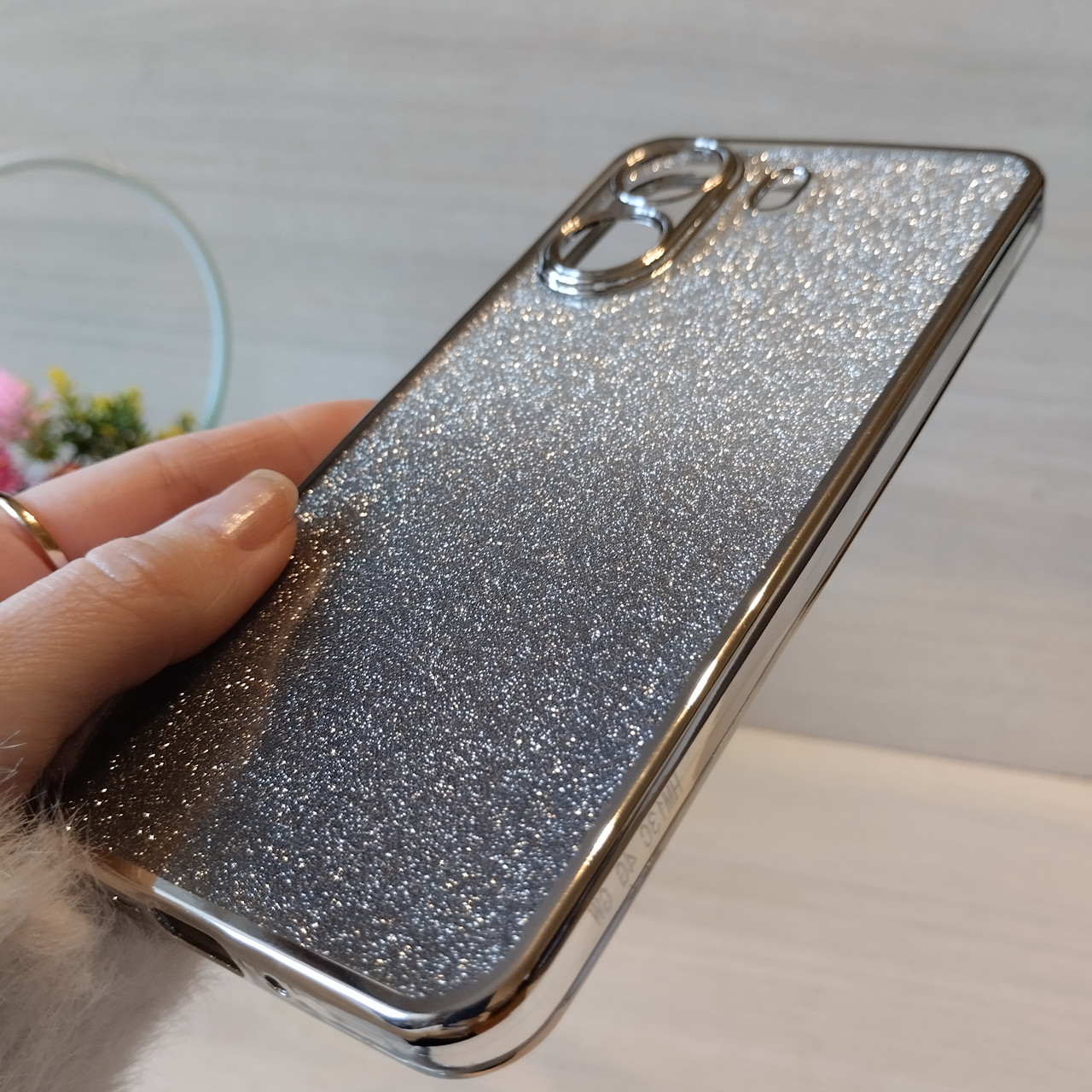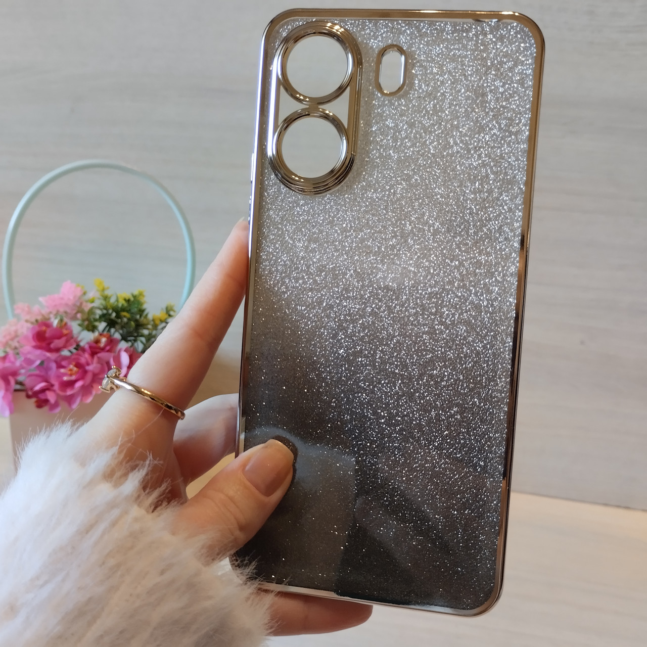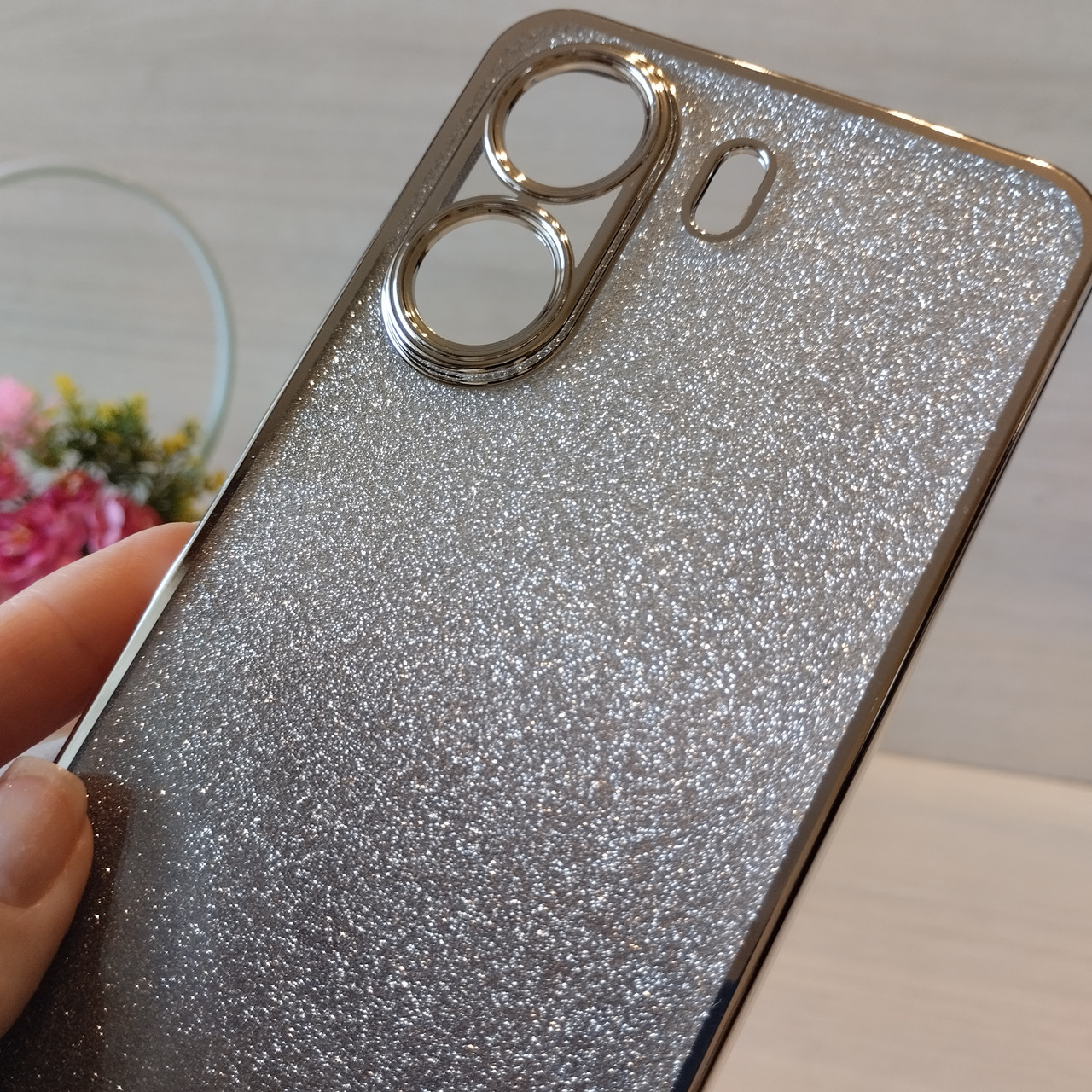 Чехол на Poco c65 силиконовая женская накладка блестящая градиент серебристый
