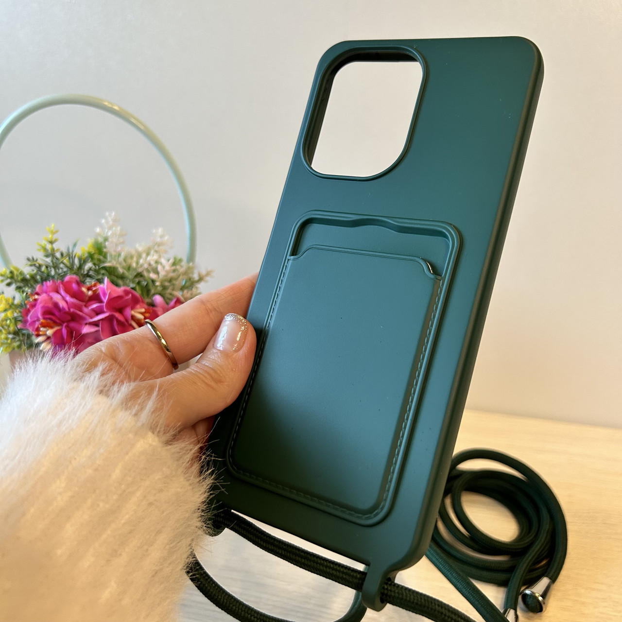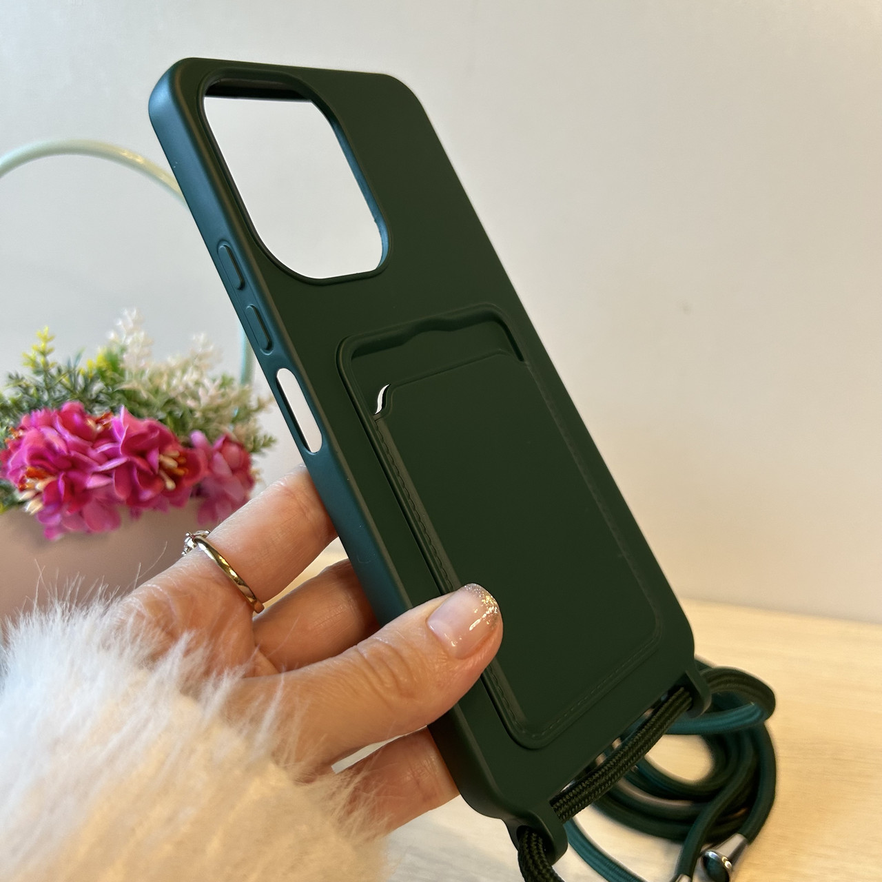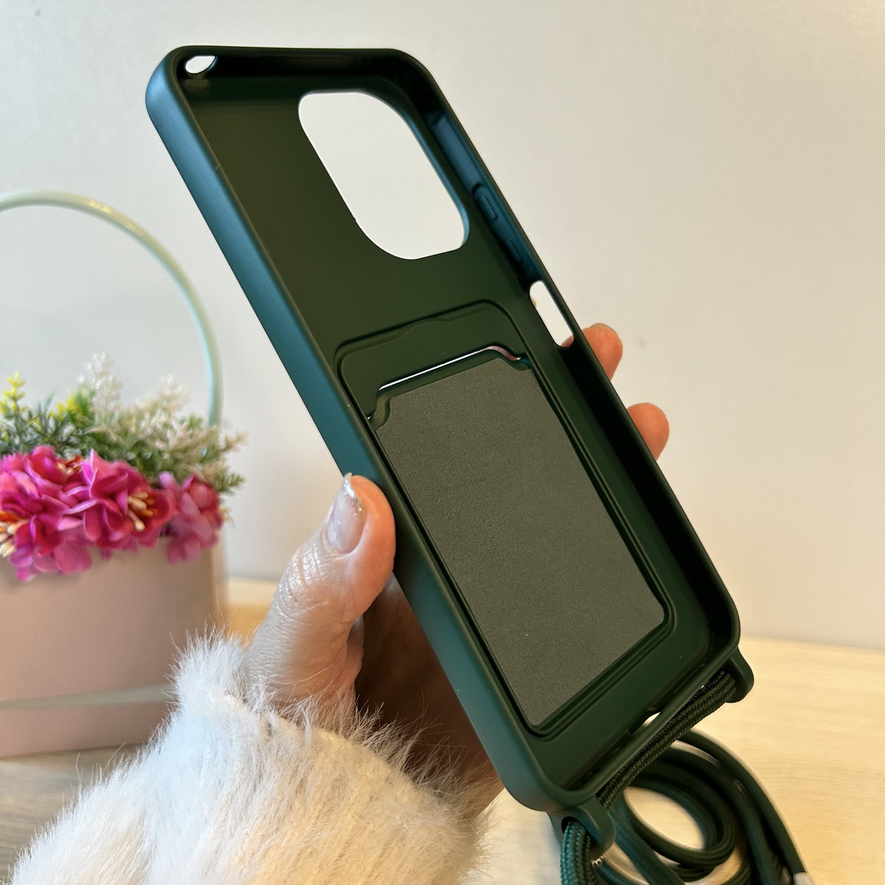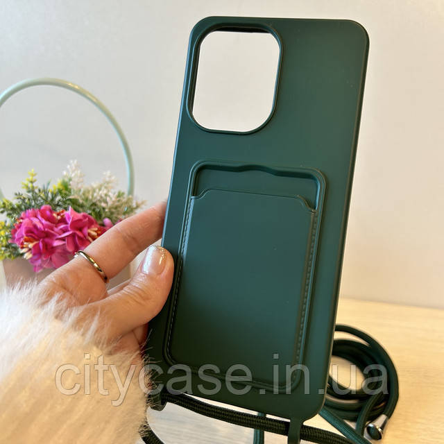 Чохол для Poco c65 силіконовий з ремінцем і кишенею під картки Wave Colorful зелений