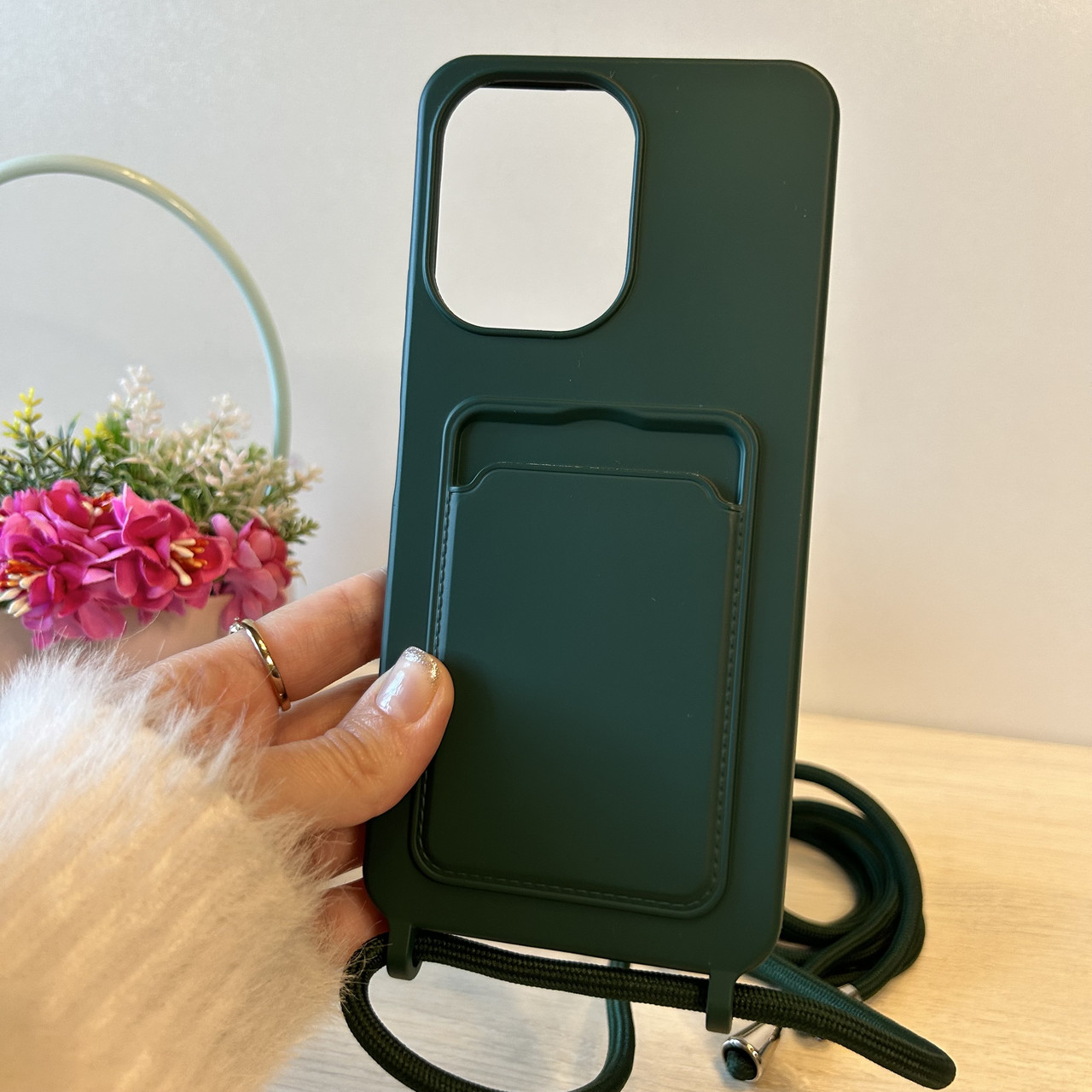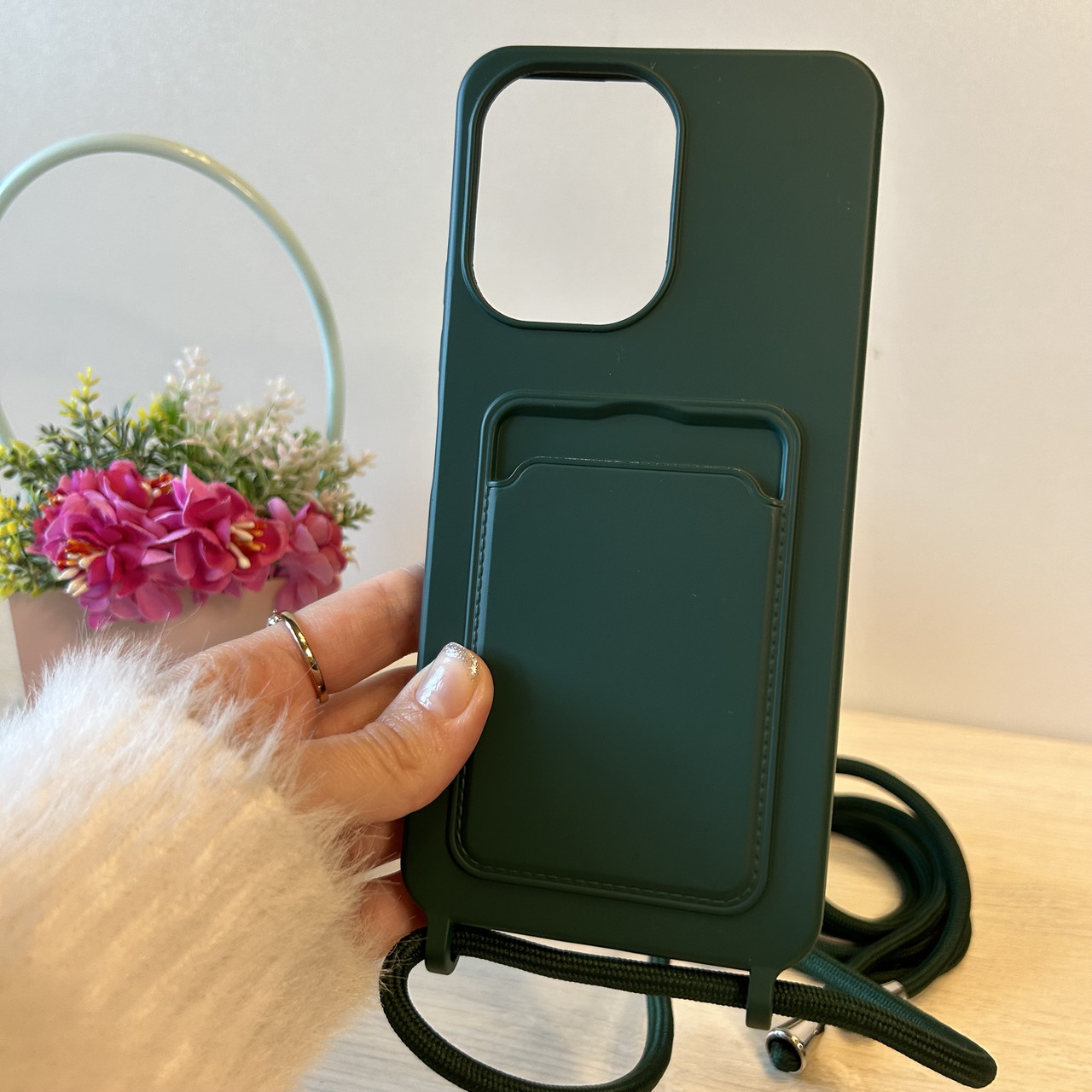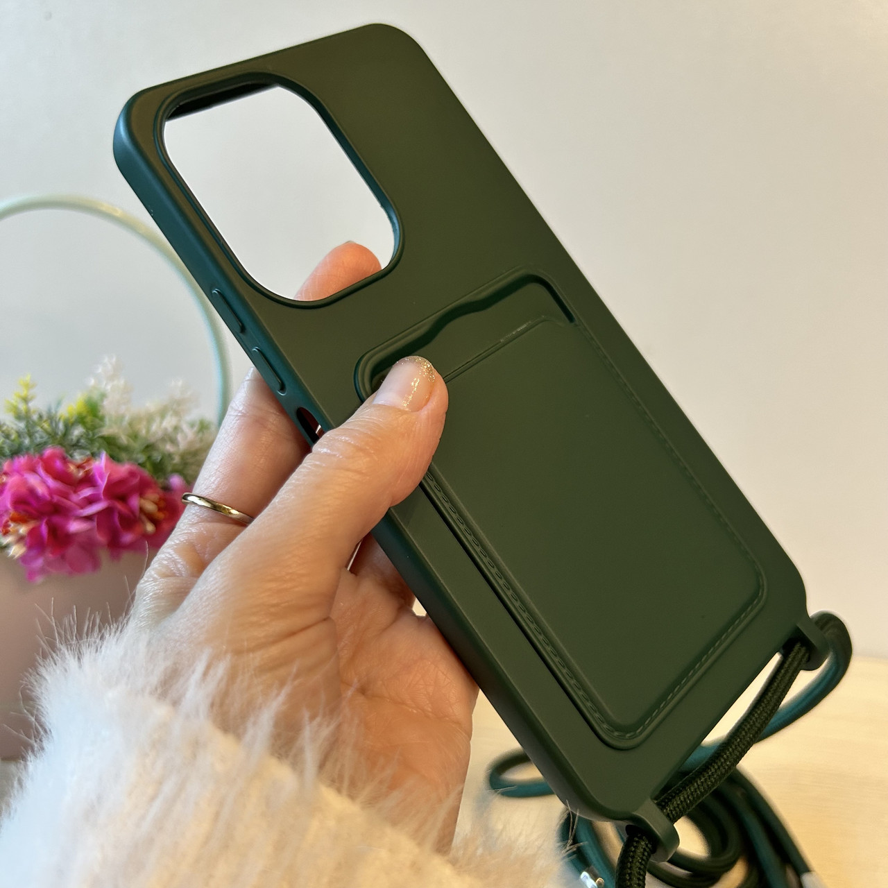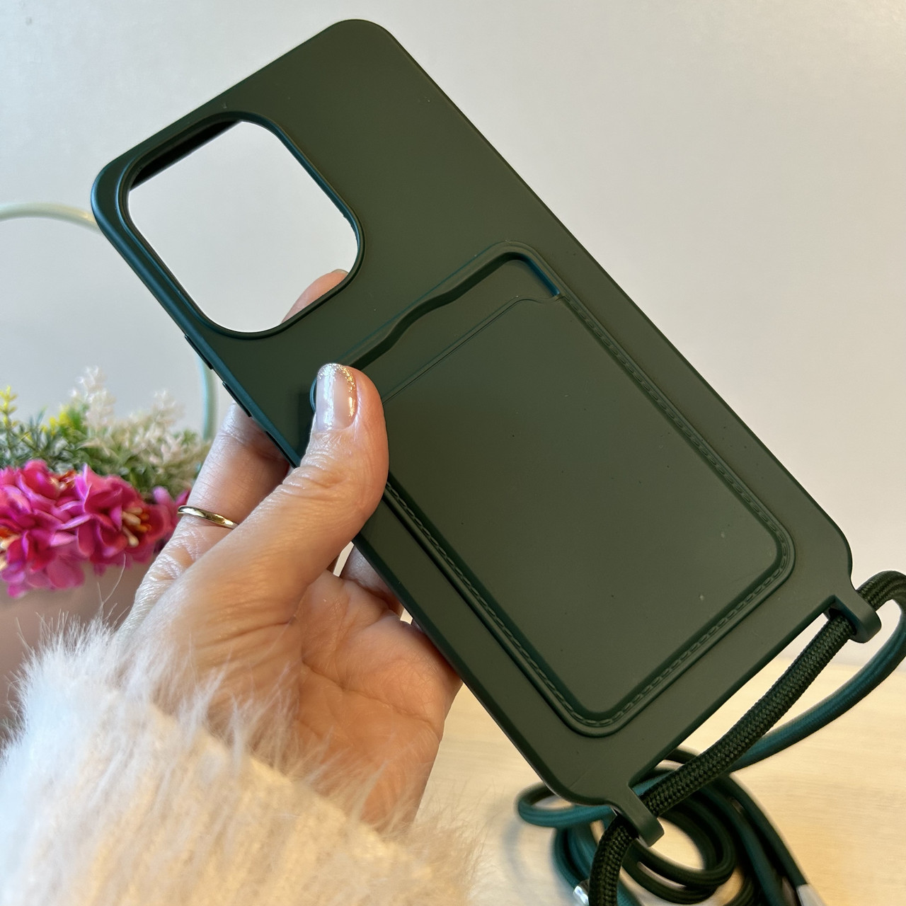 Чохол для Poco c65 силіконовий з ремінцем і кишенею під картки Wave Colorful зелений