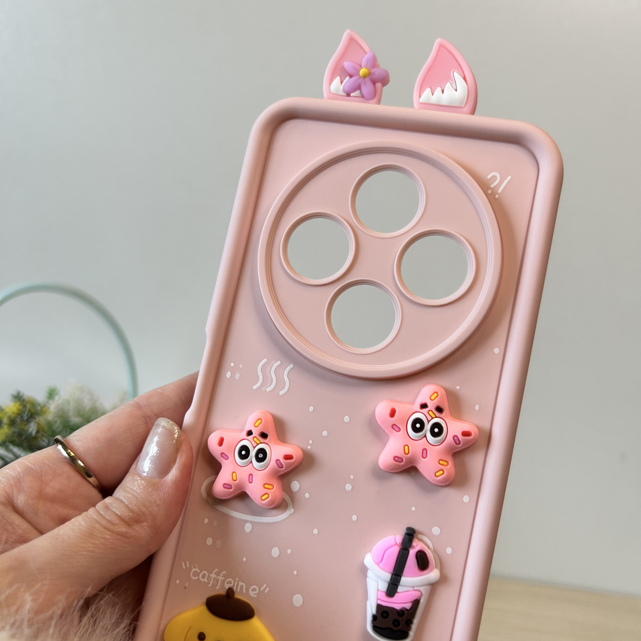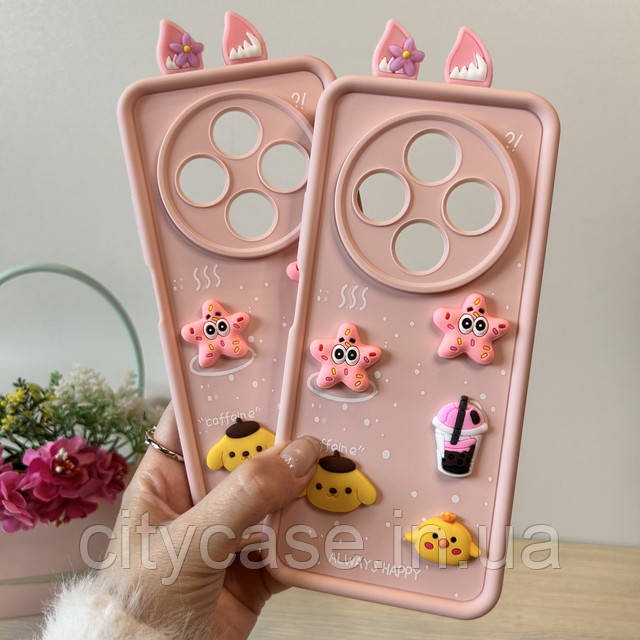 Чохол для Poco c75 силіконовий з 3-D наклейками та вушками TPU Toys Case (рожевий)
