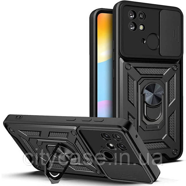 Чохол для Xiaomi redmi 10c протиударний бампер зі шторкою й кільцем на телефон сяомі редмі 10с (чорний)