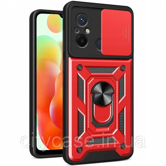 Чохол для Xiaomi redmi 12c / сяомі редмі 12с протиударний бампер зі шторкою и кольцом (червоний)