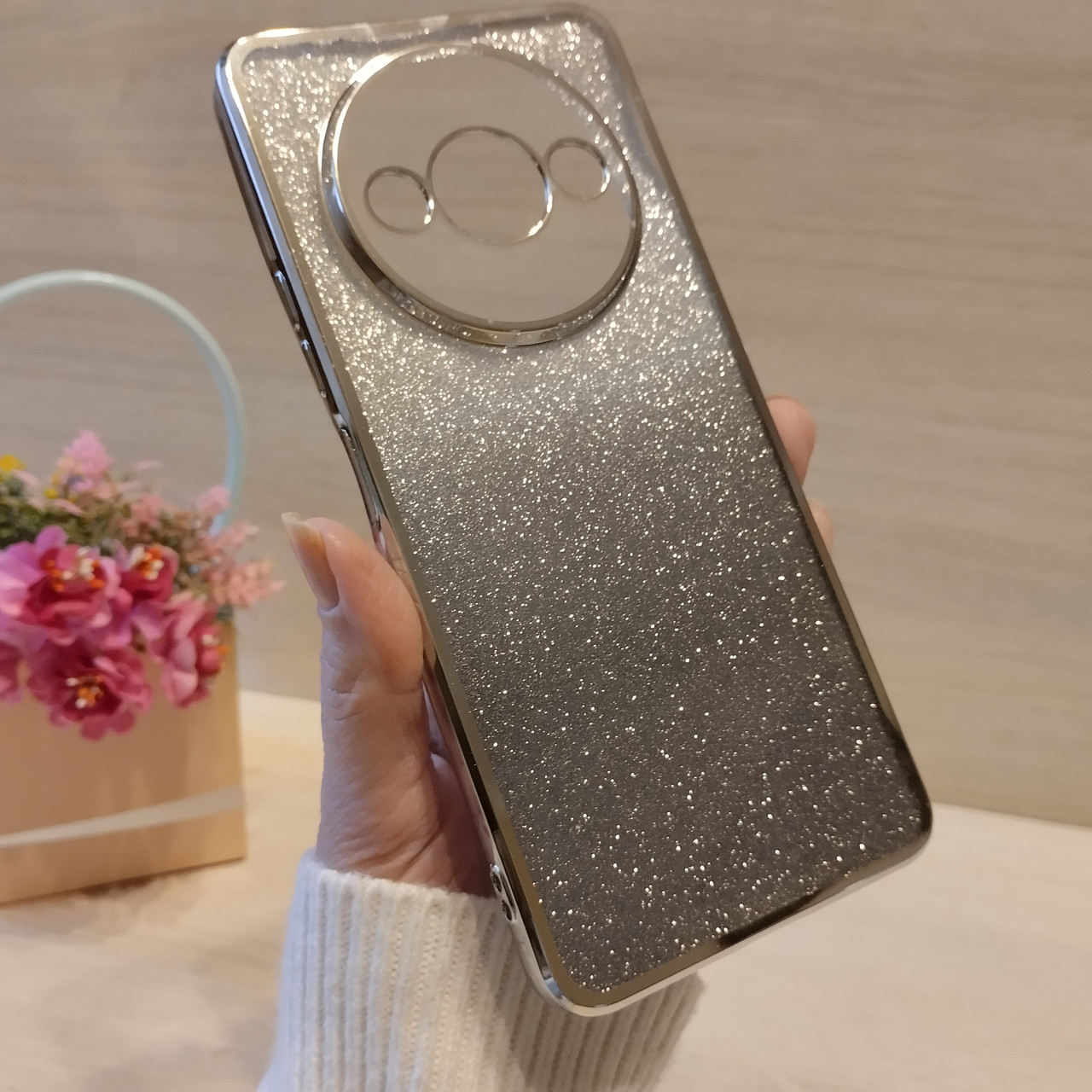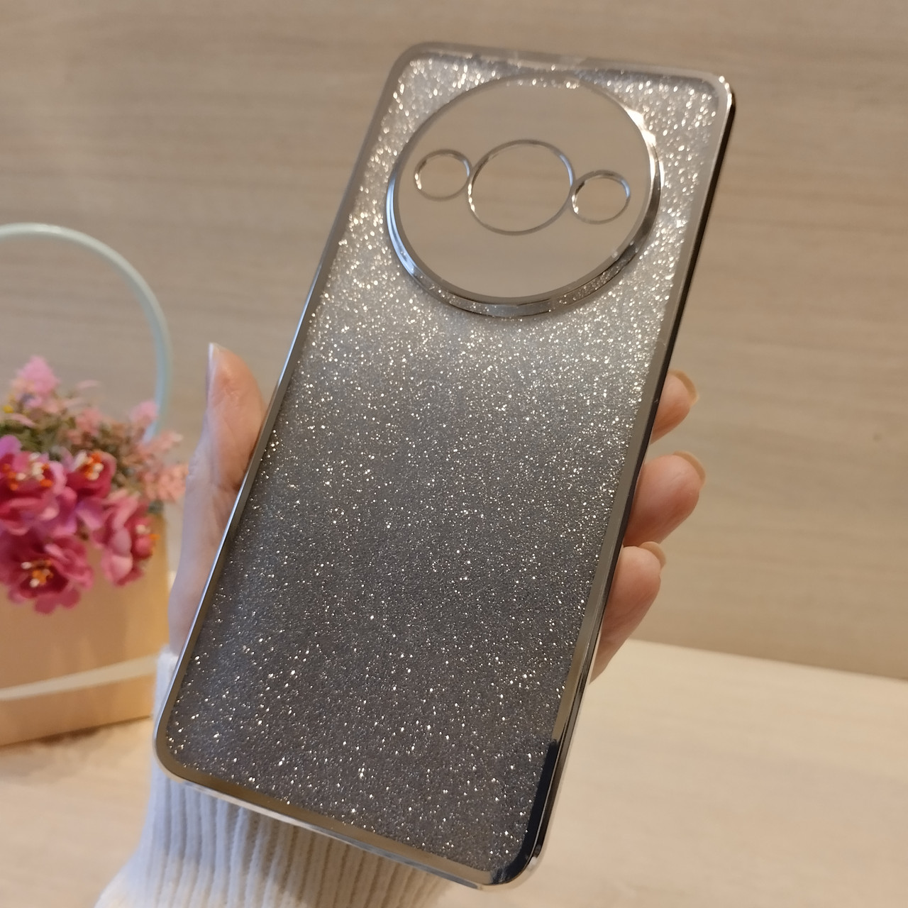 Чохол для xiaomi redmi A3 силіконова жіноча накладка блискучий градієнт сріблястий