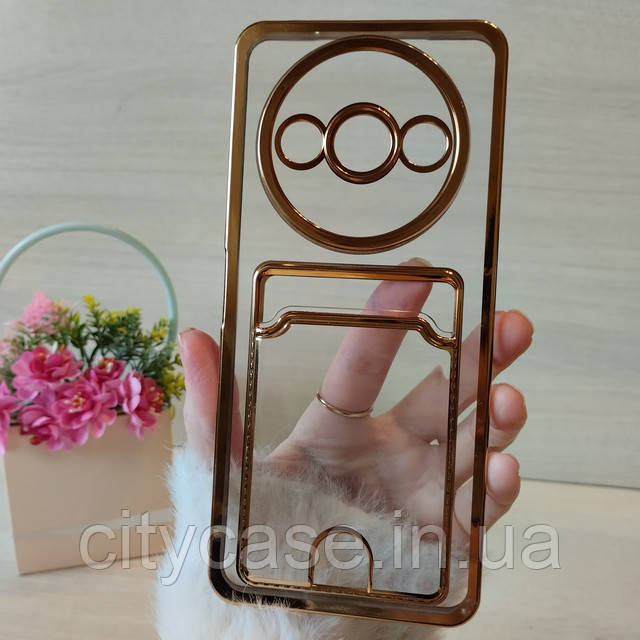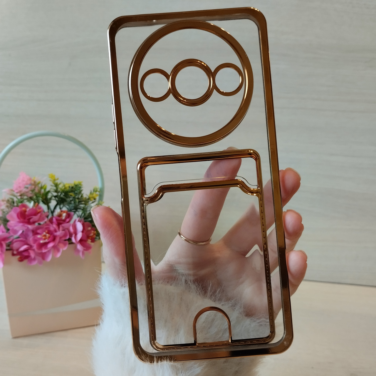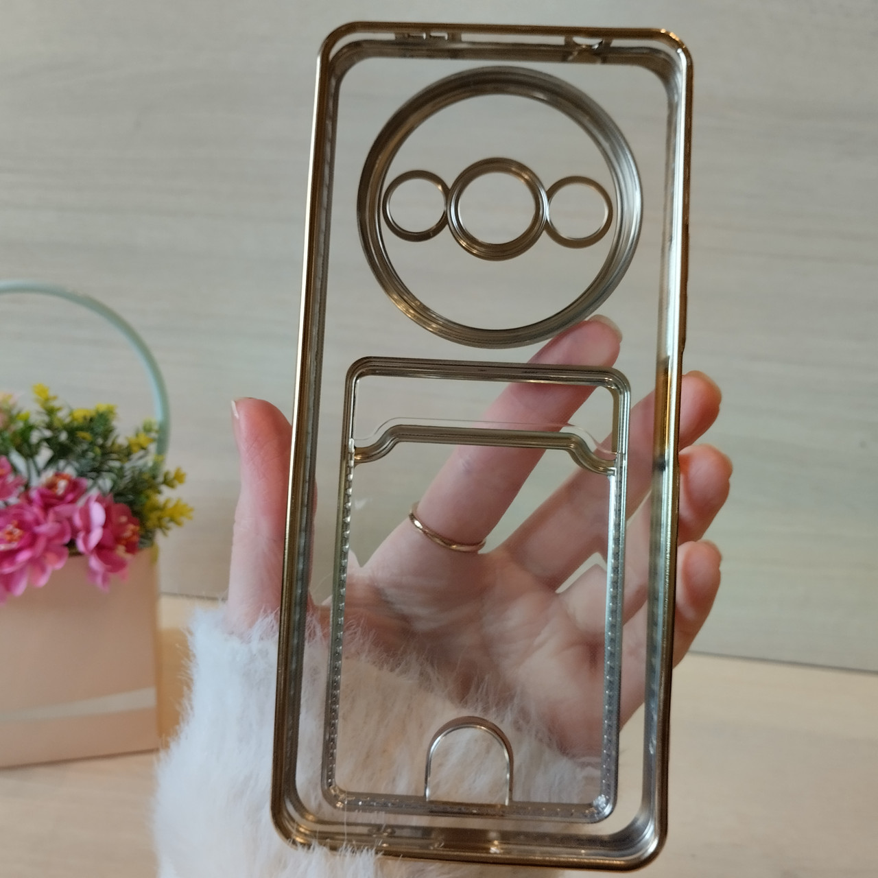 Чохол для xiaomi redmi A3 силіконовий жіночий з кишенею під картки та золотистою рамкою