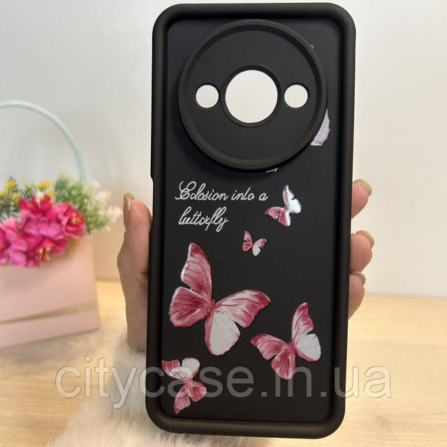 Чохол для xiaomi redmi A3 силіконовий з малюнком TPU Pictures Case чорний з метеликами