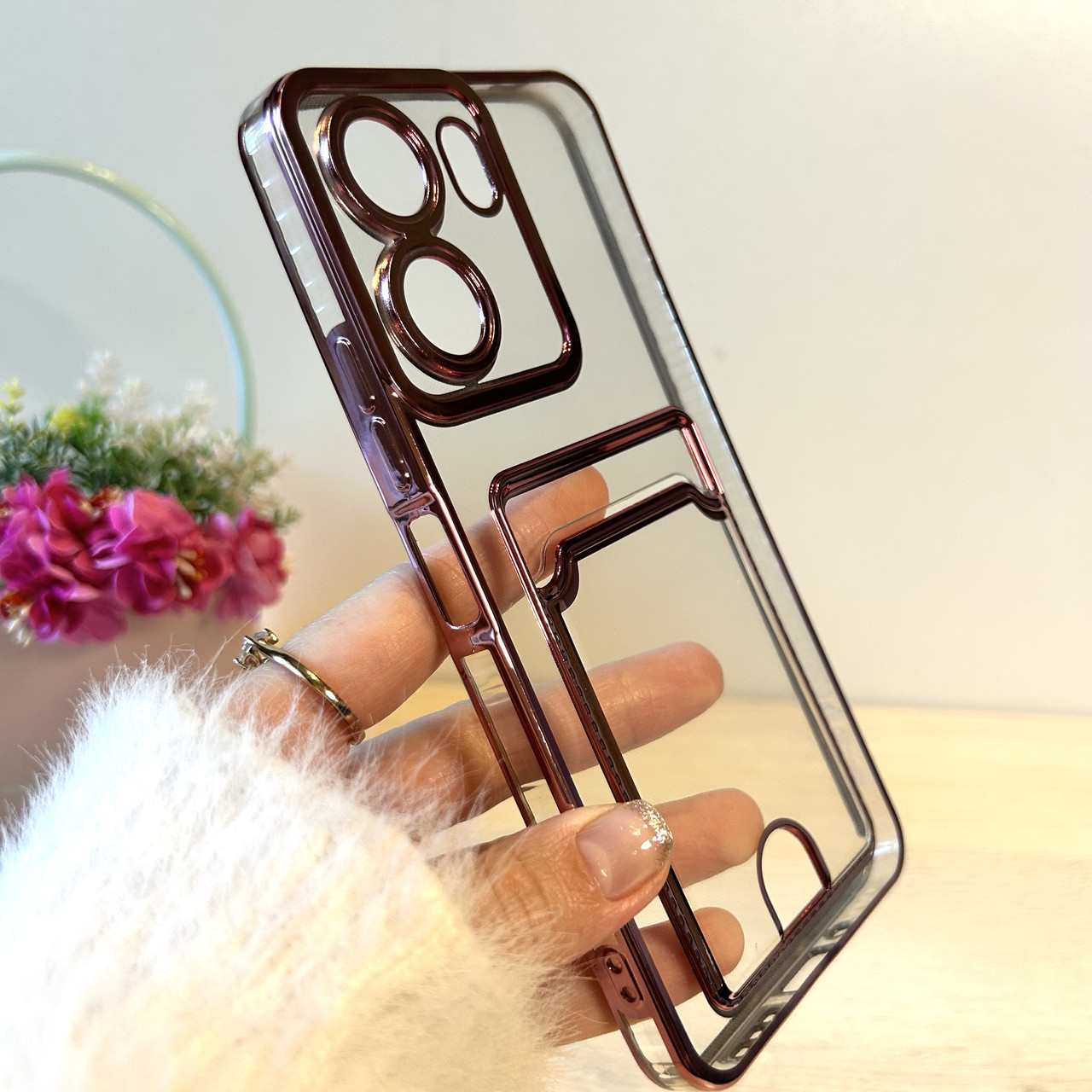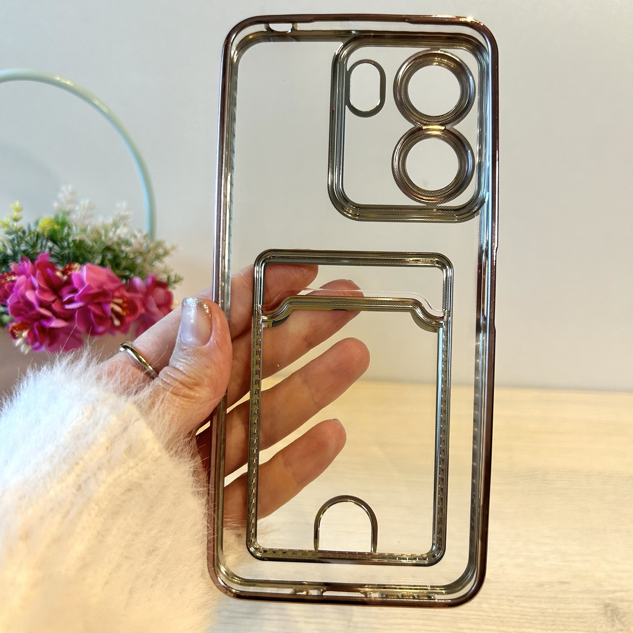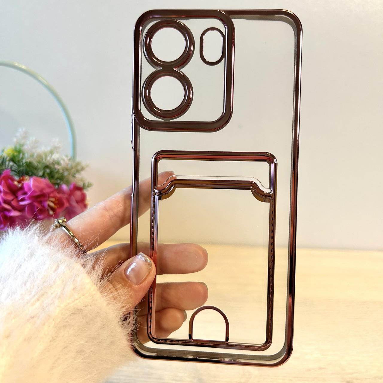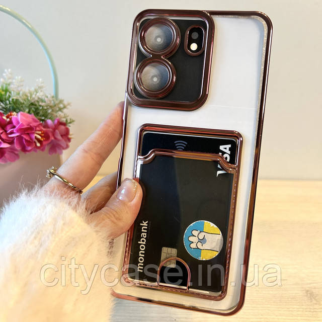 Чохол на Poco c65 силіконовий жіночий із рожевою рамкою та кишенею під картки