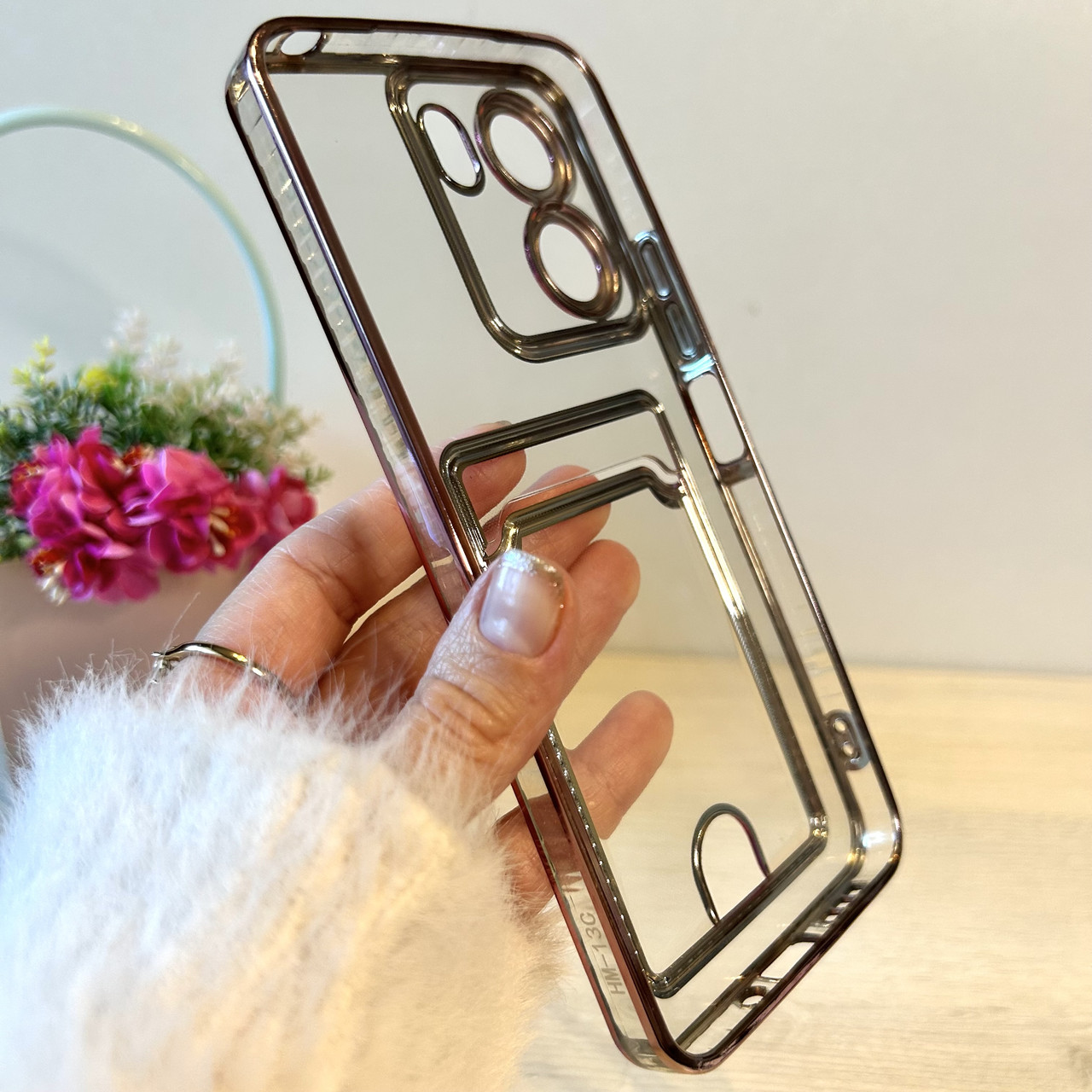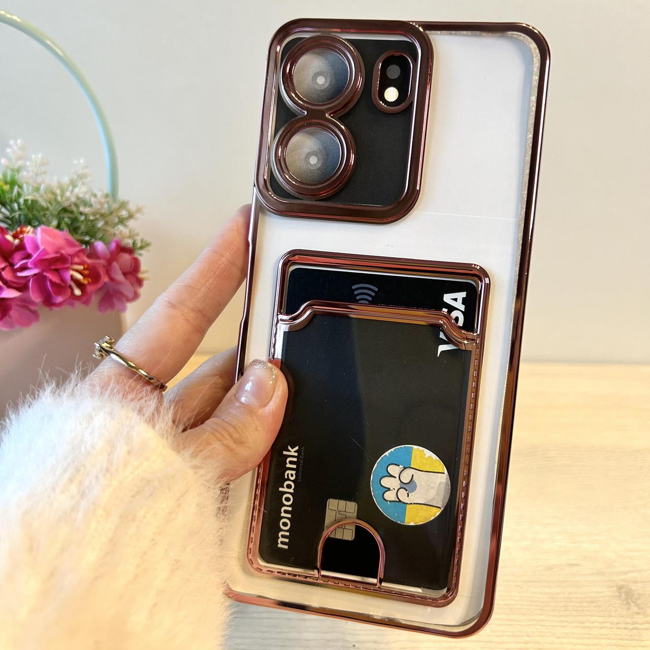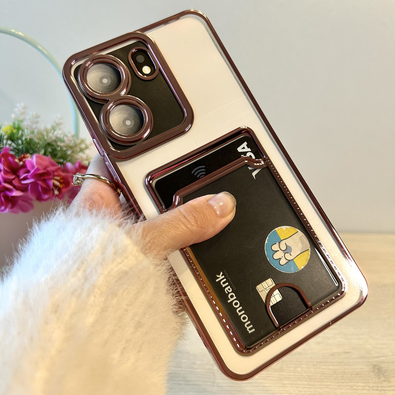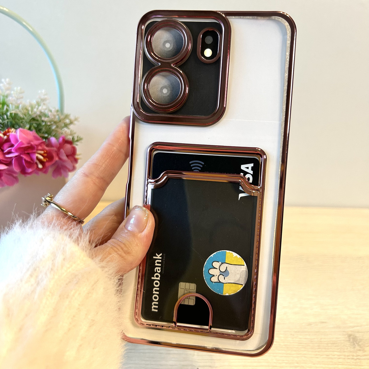 Чохол на Poco c65 силіконовий жіночий із рожевою рамкою та кишенею під картки