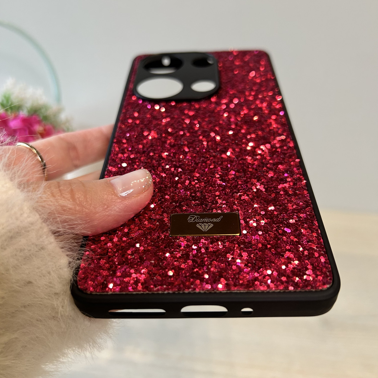 Чохол на Poco m6 pro 4g силіконова жіноча накладка блискуча Diamond shine чорний червоний
