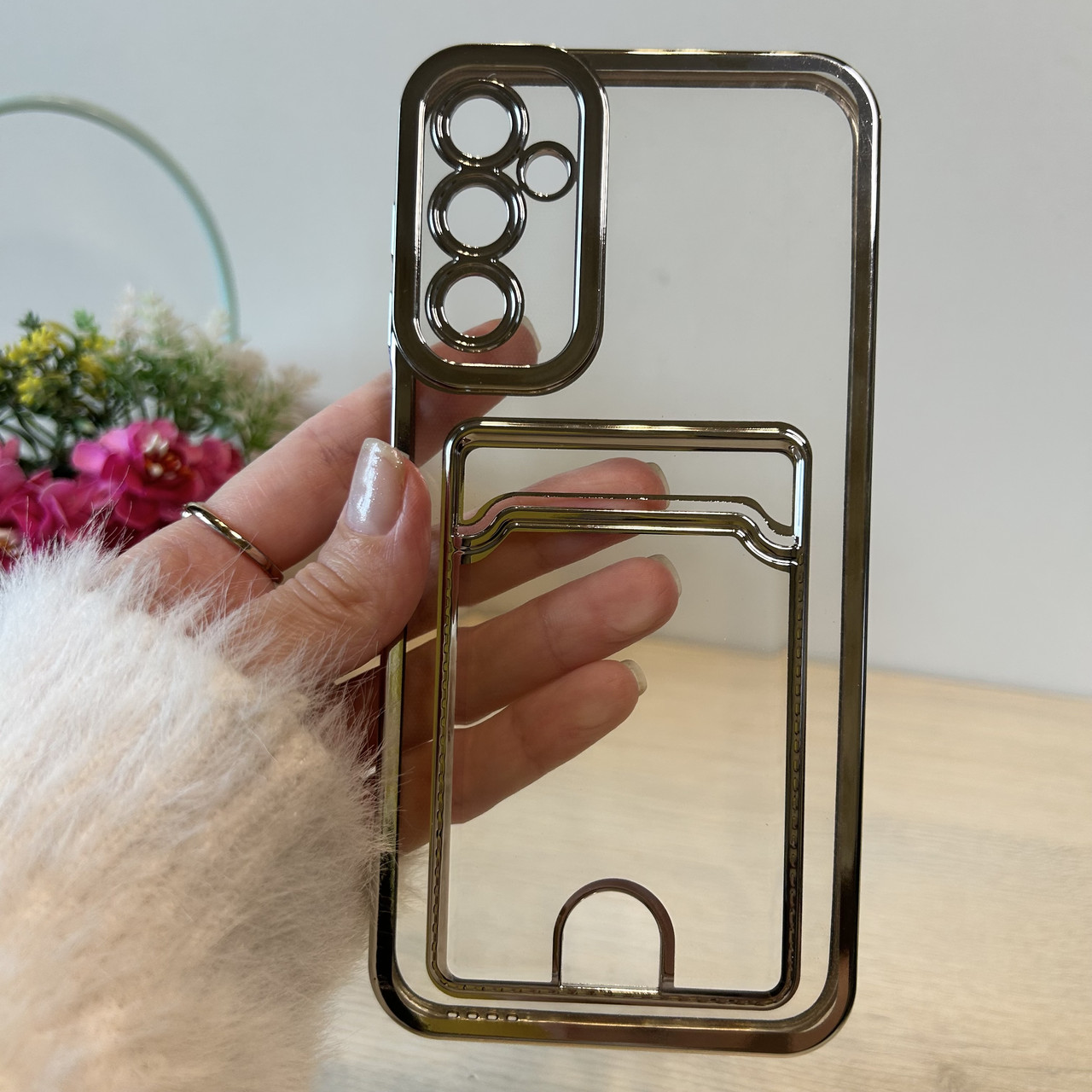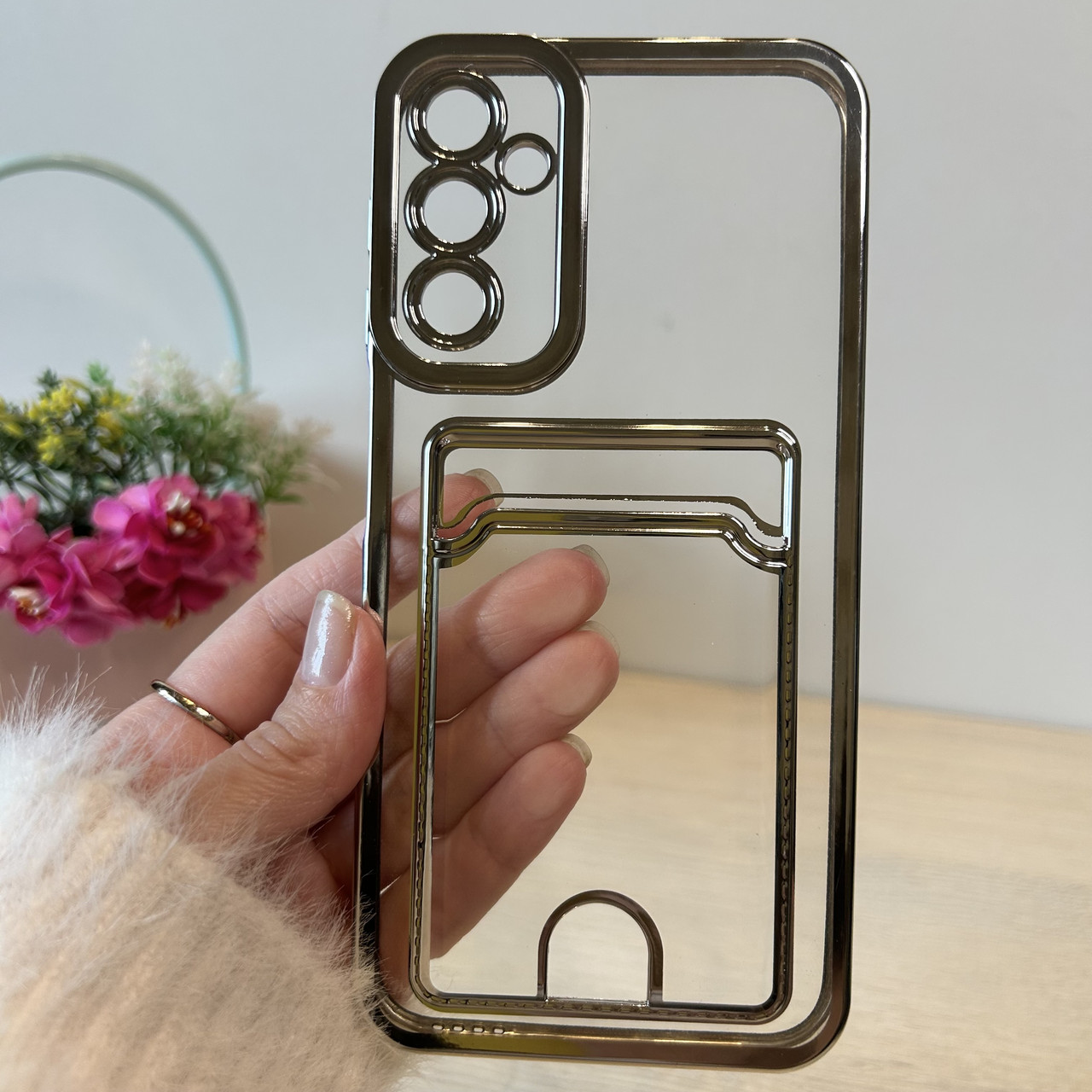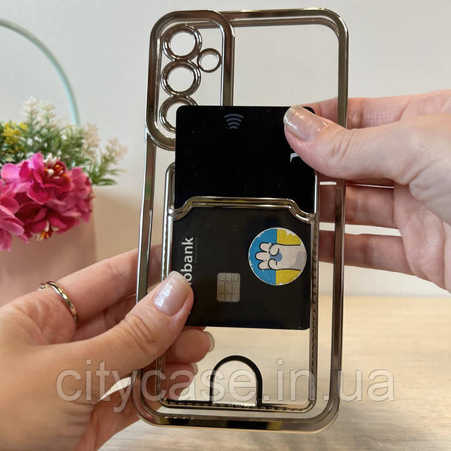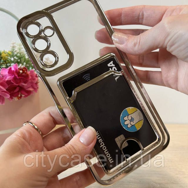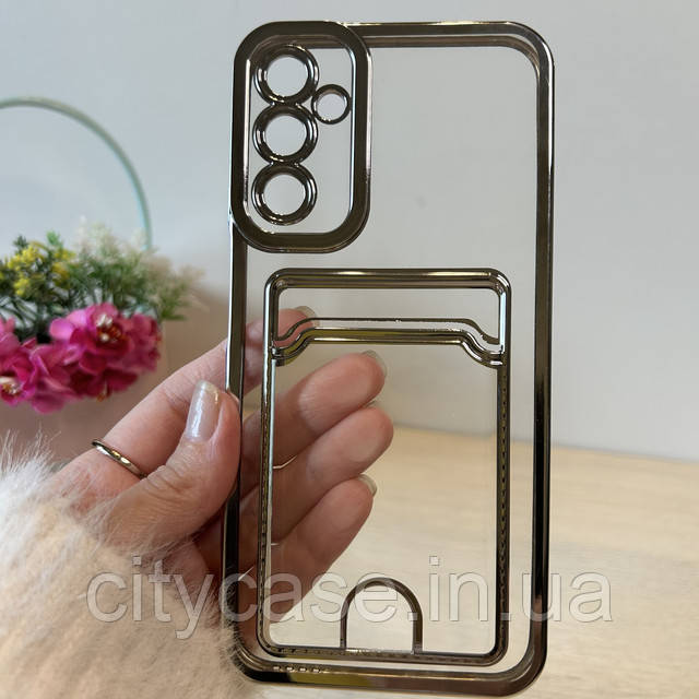 Чохол на Samsung A24 силіконовий зі сріблястою рамкою та кишенею під картки, фото