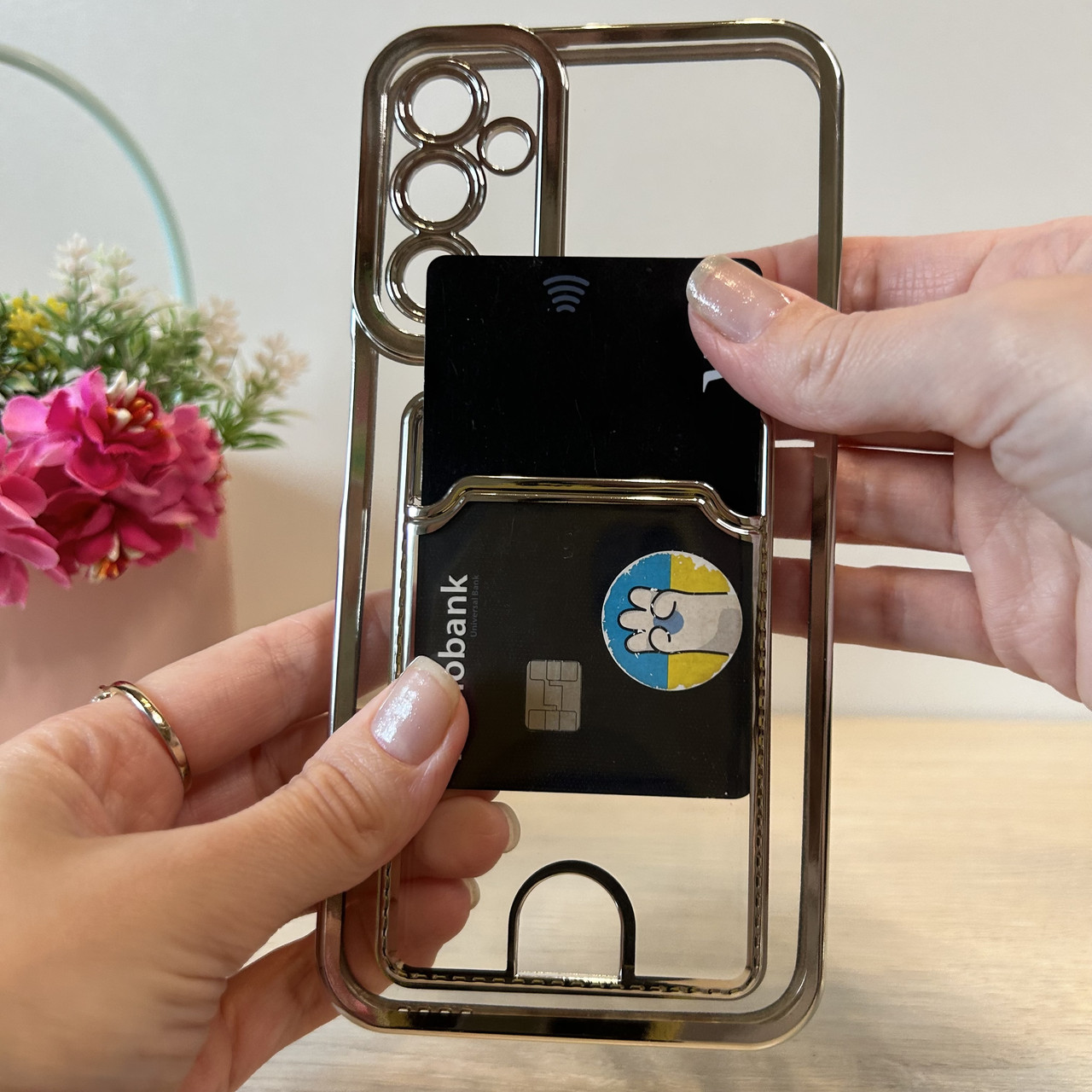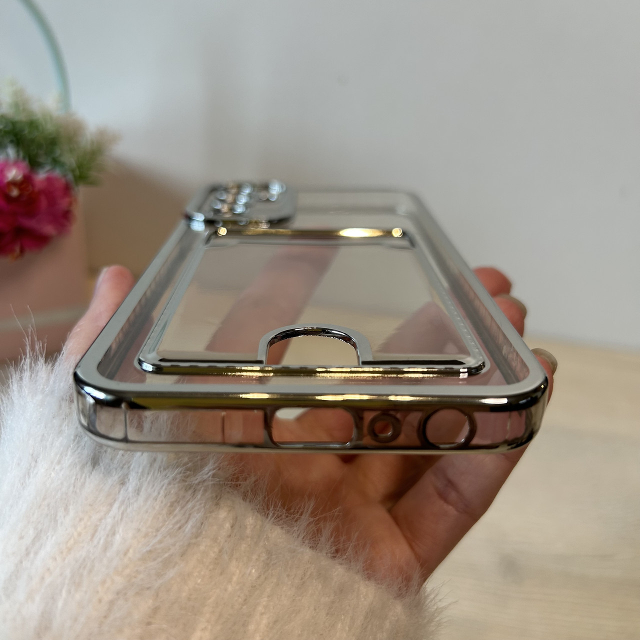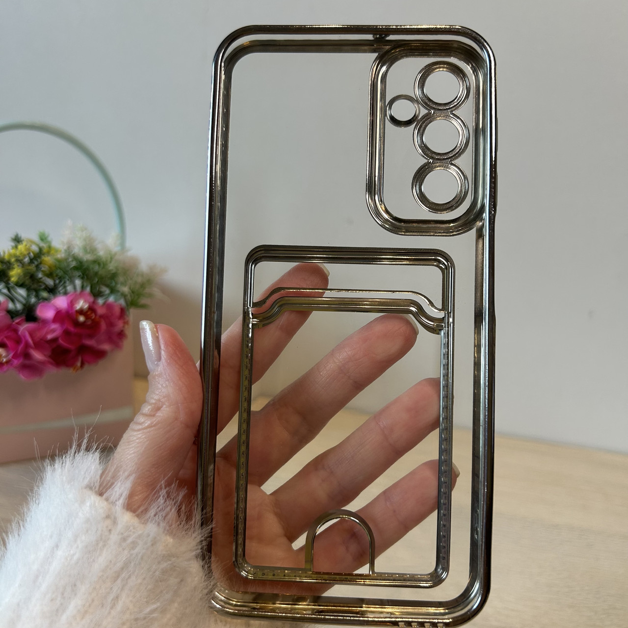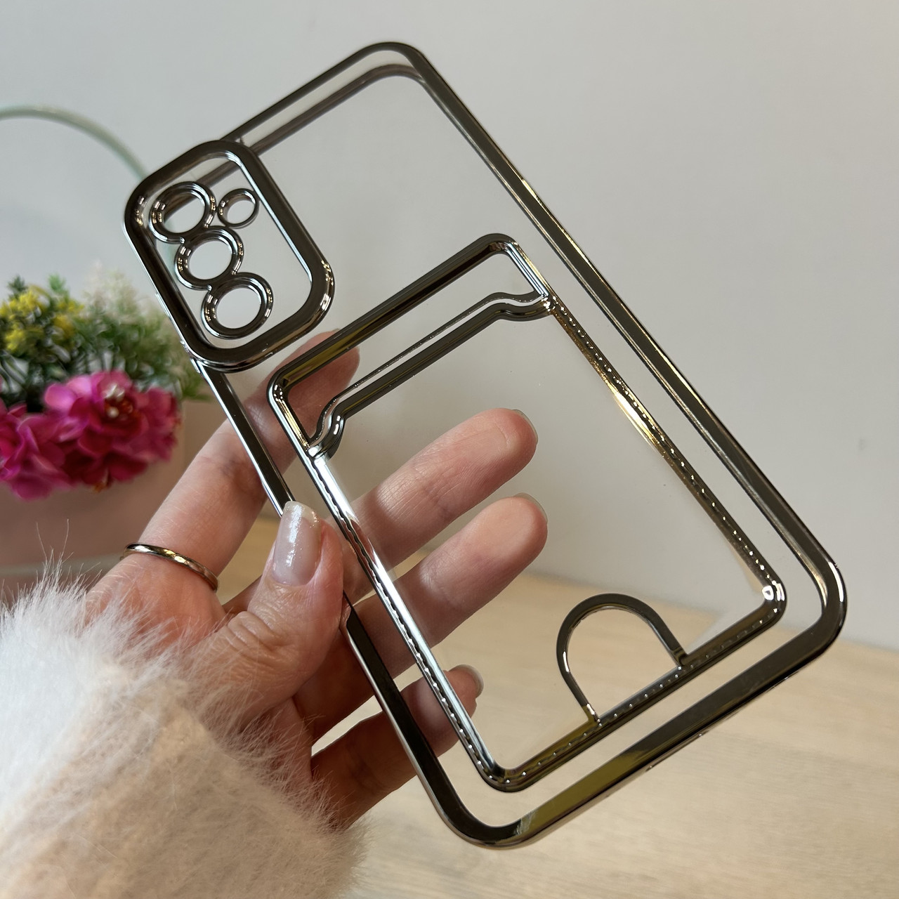 Чохол на Samsung A24 силіконовий зі сріблястою рамкою та кишенею під картки, фото