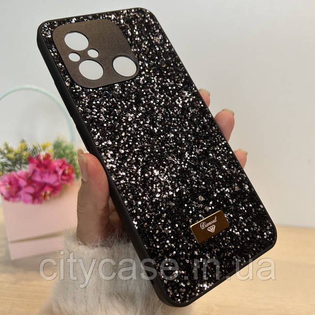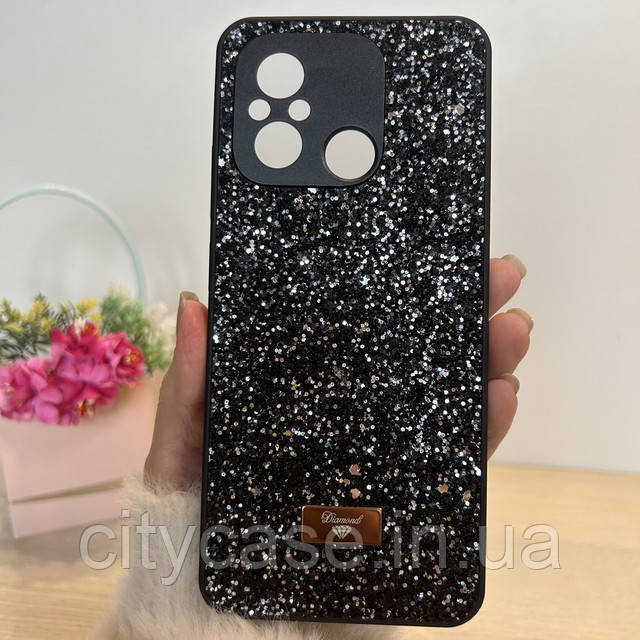 Чохол на xiaomi redmi 12c силіконова накладка блискуча Diamond shine чорний