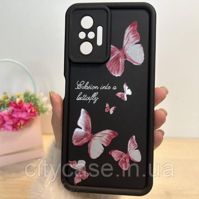 Чохол на xiaomi redmi Note 10 pro силіконовий з малюнком TPU Pictures Case чорний з метеликами