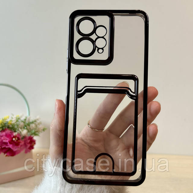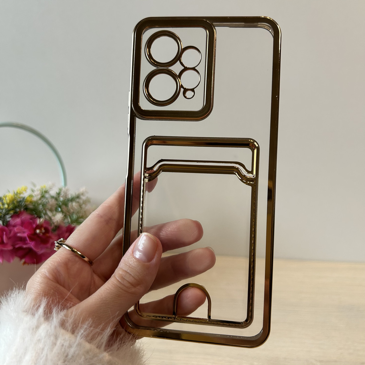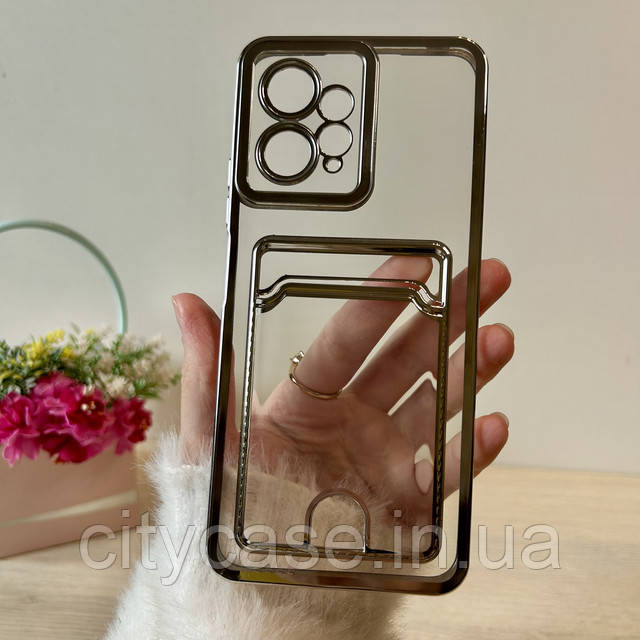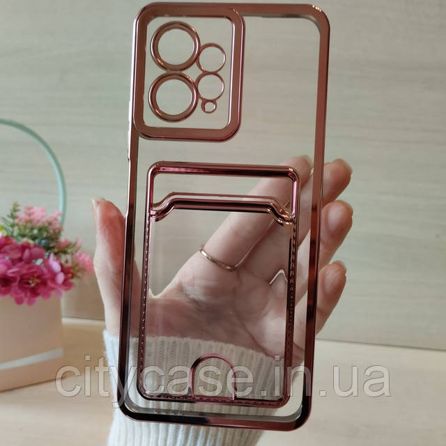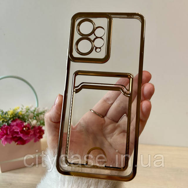 Чохол на xiaomi redmi Note 12 4g силіконовий жіночий з золотистою рамкою та кишенею під картки