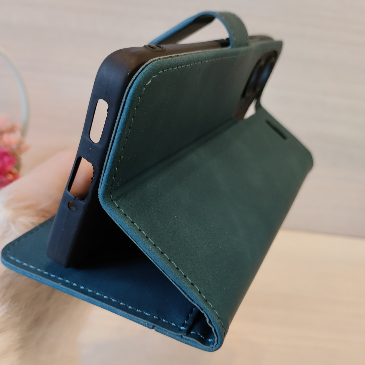Чохол на xiaomi redmi Note 13 pro plus 5g книжка підставка з хлястиком і візитницею Luxury Leather (зелений)