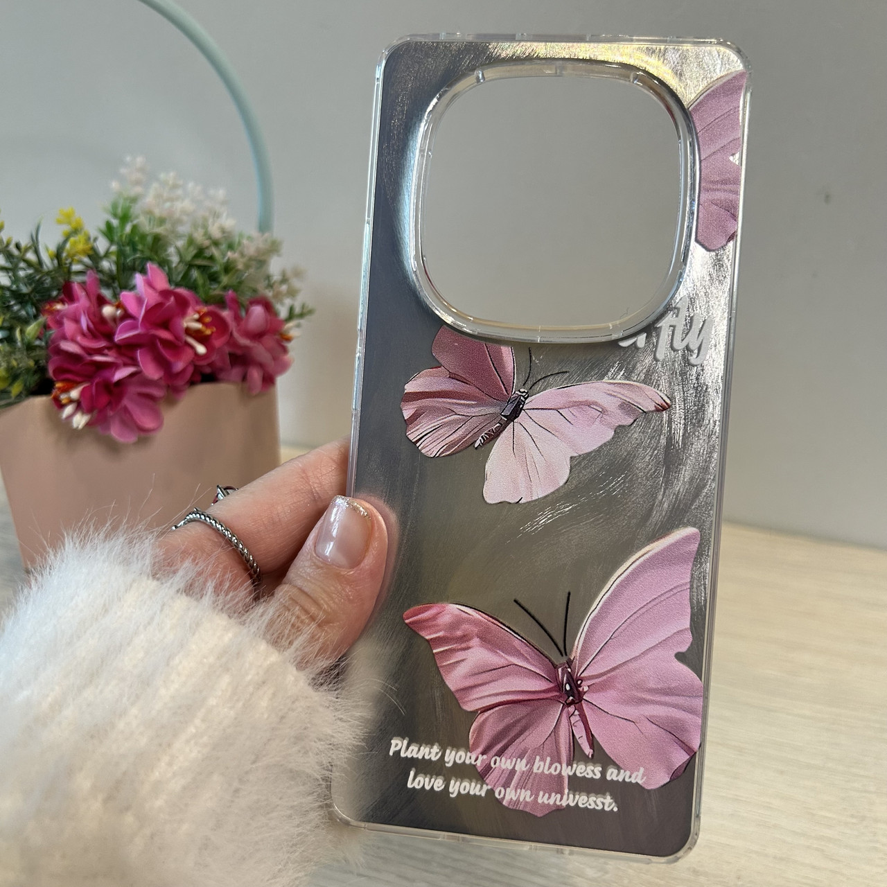 Чехол на xiaomi redmi Note 14 pro 4g силіконова жіноча накладка блискуча з малюнком метелика