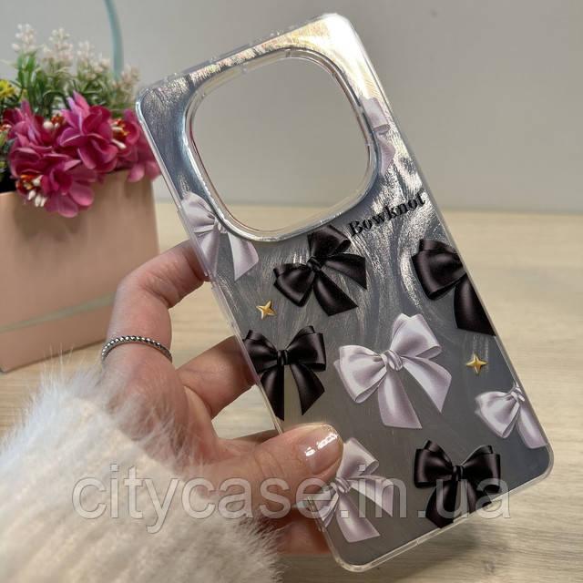 Чохол на xiaomi redmi Note 14 pro plus + 5g силіконова жіноча накладка блискучий з малюнком бантики