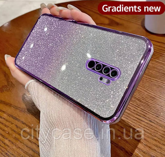 Чохол на xiaomi redmi Note 8 pro силіконова жіноча накладка блискучий градієнт фіолетовий