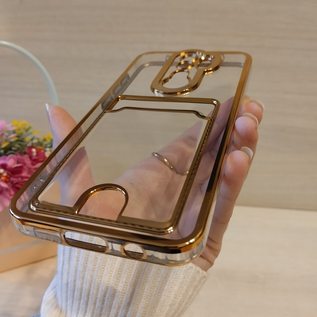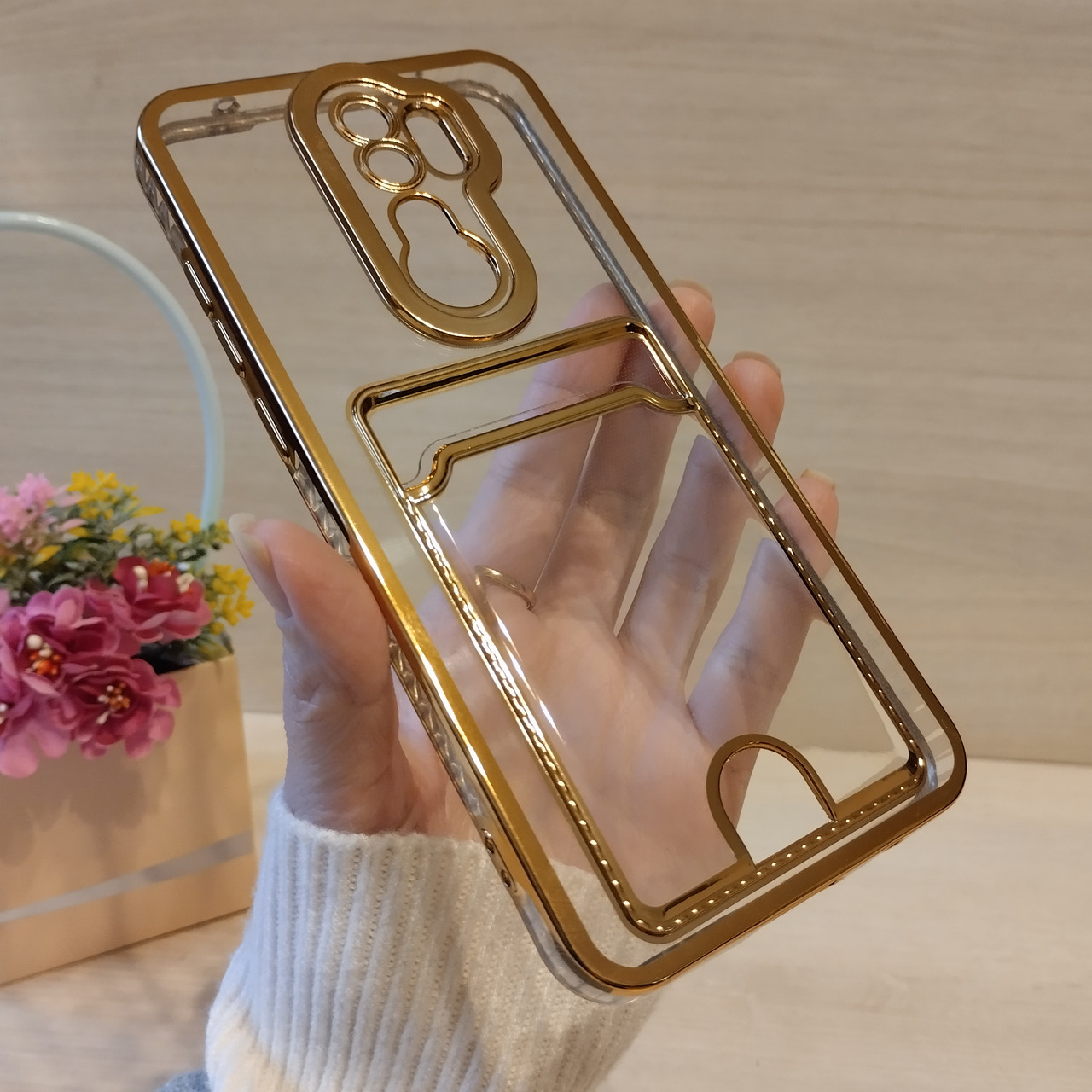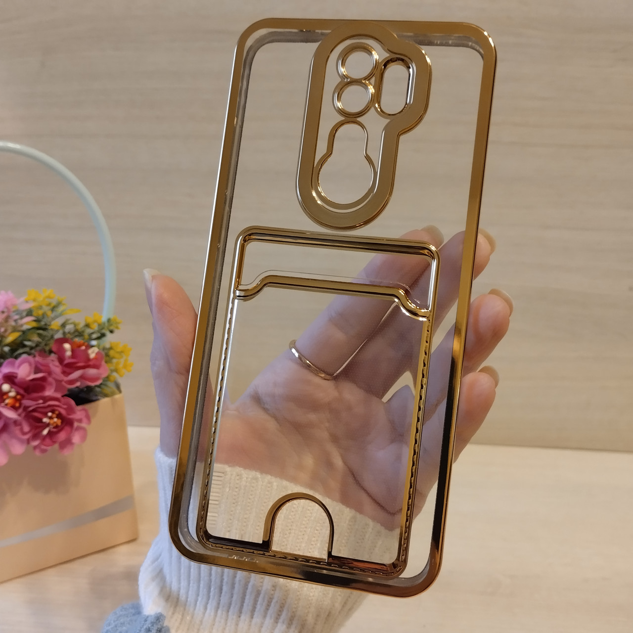Чохол на xiaomi redmi Note 8 pro силіконовий жіночий із золотистою рамкою та кишенею під картки